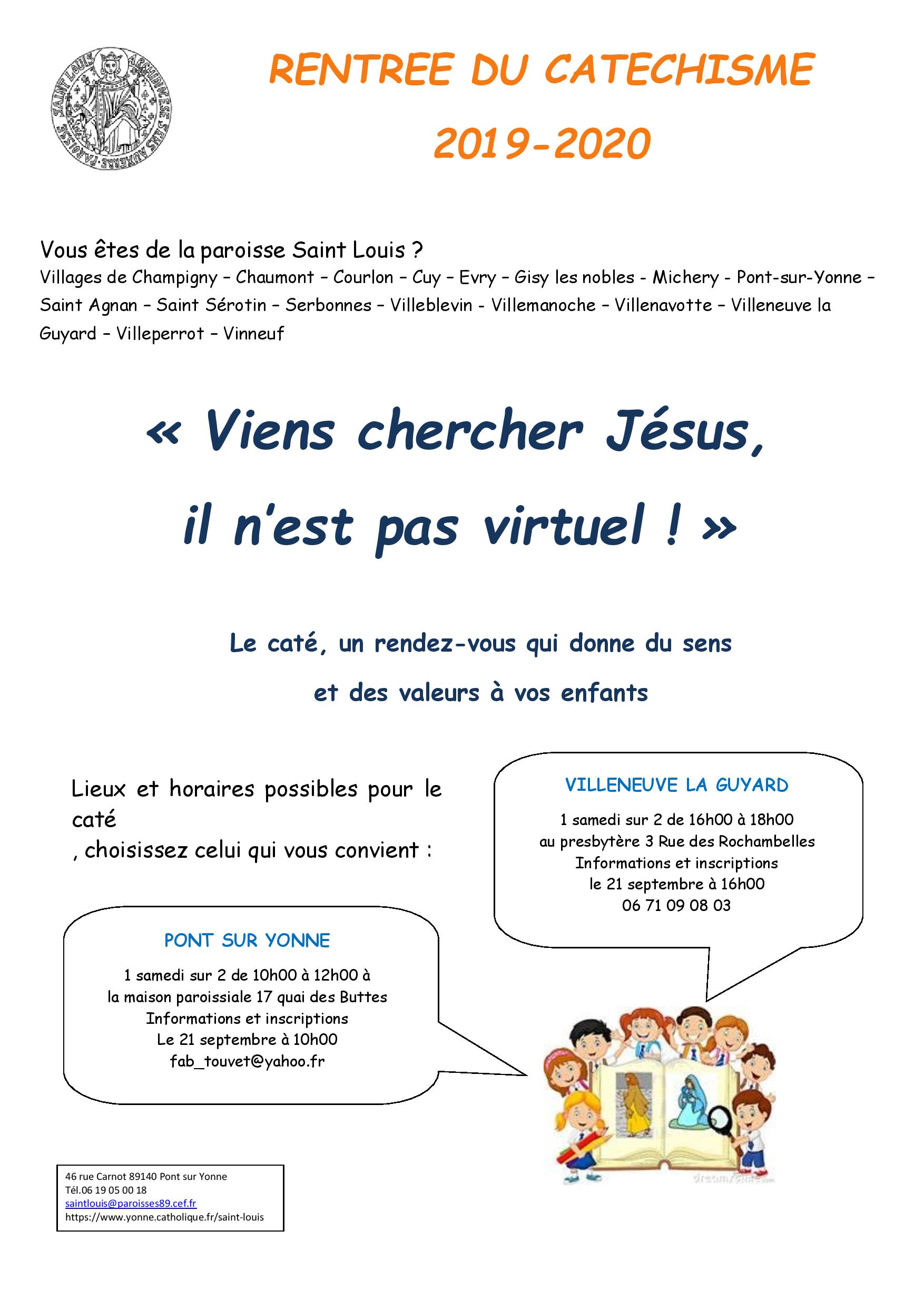 Les inscriptions au catéchisme auront lieu le 21 septembre, à Villeneuve-la-Guyard et Pont-sur-Yonne.