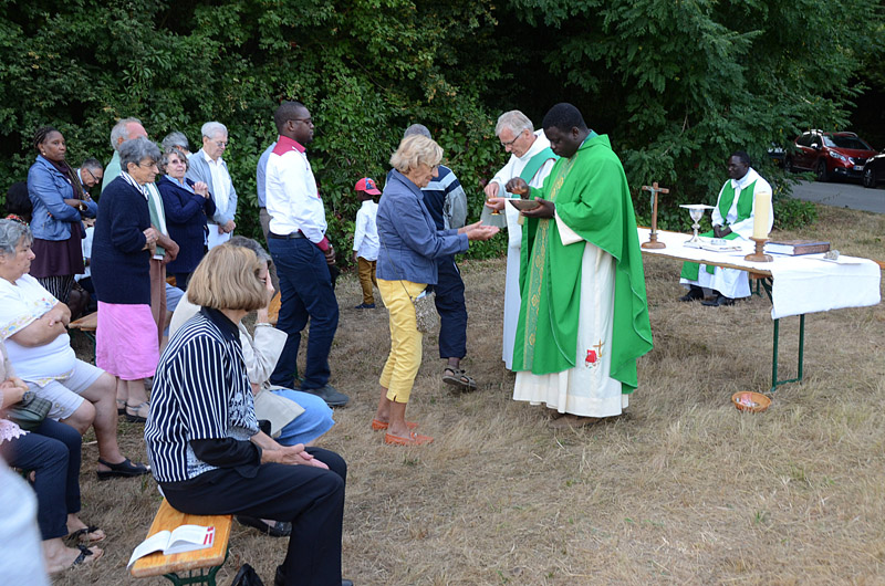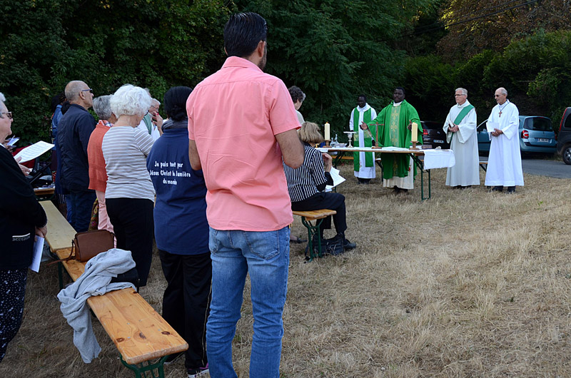Pour la première fois, la messe fut célébrée sur le lieu même de l’oratoire, par le père Dominique. Il nous rappelait, dans son homélie l’importance du culte de St Gilles dès le VIII° siècle, vénéré pour la guérison des maladies nerveuses, la protection des enfants, et des infirmités diverses, mais aussi l’importance de notre rassemblement en fraternité ce soir…Le fait de nous retrouver nombreux, venus des quatre coins de notre paroisse saint Louis pour prier ensemble, nous a confortés dans notre foi et notre rôle de « Peuple de Dieu ».