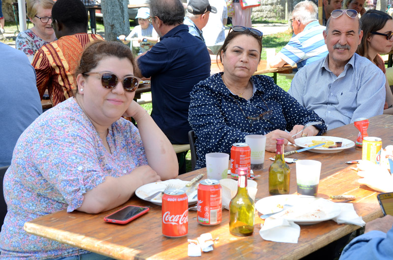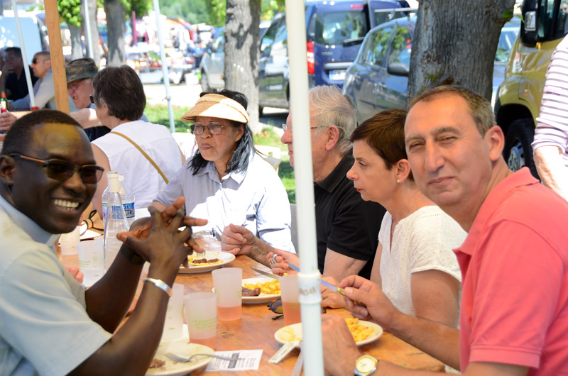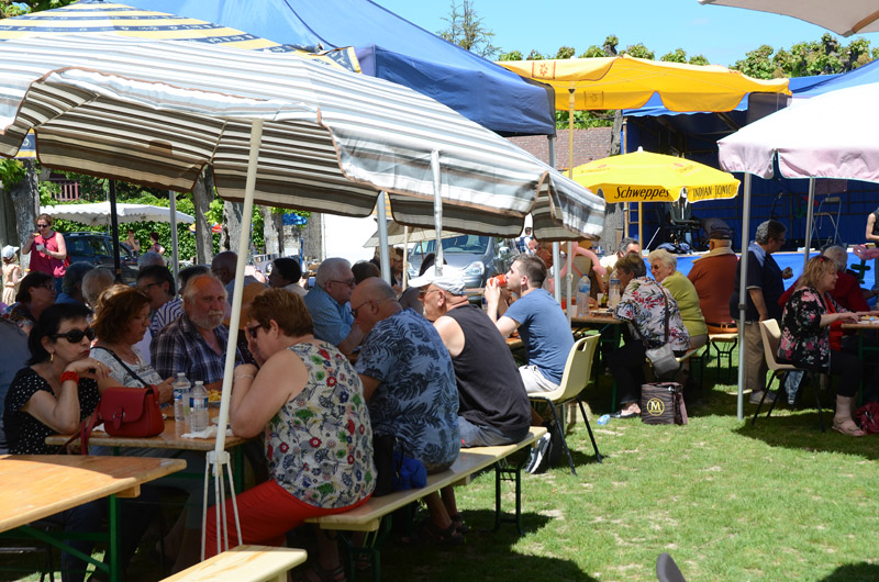 Chiner et découvrir l’objet rare recherché depuis longtemps c’est une chose, et se retrouver entre amis ou en famille pour se restaurer à l’ombre d’un parasol en est une autre. Frites merguez, saucisse andouillettes et autres pâtisseries maison ont fait le bonheur d’une assistance nombreuse. Toute cette journée s’est déroulée dans une atmosphère chaleureuse. La paroisse avait largement ouvert ses portes à tous, familles, élus, habitants de Pont et des, environs. On a retrouvé des amis, on a fait connaissance, on a pu partager de précieux moments de convivialité et d’amitié autour d’un verre ou d’un café. Les pères Samson et Célestin , présents depuis le matin, ont pu serrer des mains nouvelles et apporter leur joie de vivre.