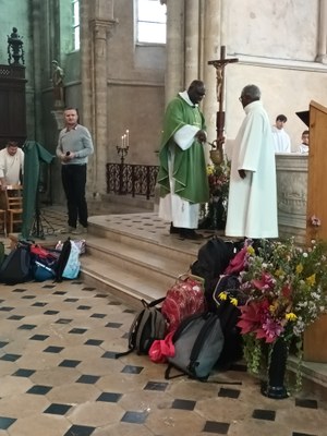 Nos enfants ont pu venir à la messe de ce dimanche avec leurs cartables et leurs affaires de sport.