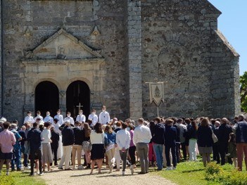 Après un long temps de préparation, accompagnés d'abord par le père Philippe puis le père Guillaume et Amélie, huit enfants de notre paroisse ont enfin pu proclamer leur profession de foi. Adrien, Axel, Emma, Gabin, Lilian, Loann, Paul et Thomas, entourés de leurs parrents, marraines et parrains ont vécu une belle célébration qui s'est achevée sur le parvis ensoleillé de l'église de Grange-le-Bocage par un chant à la Vierge Marie.