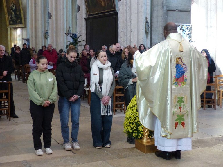 Dimanche 24 novembre,2 jeunes, Angèle et Clément, ont été accueillis dans la communauté chrétienne lors de la messe dominicale . Ils vont cheminer vers le baptême dans un groupe de plusieurs adultes qui se préparent à la confirmation.