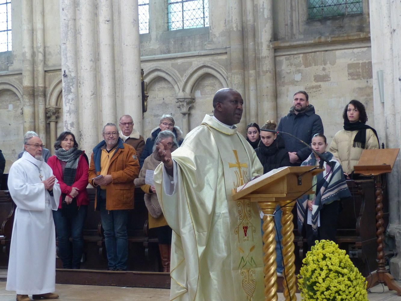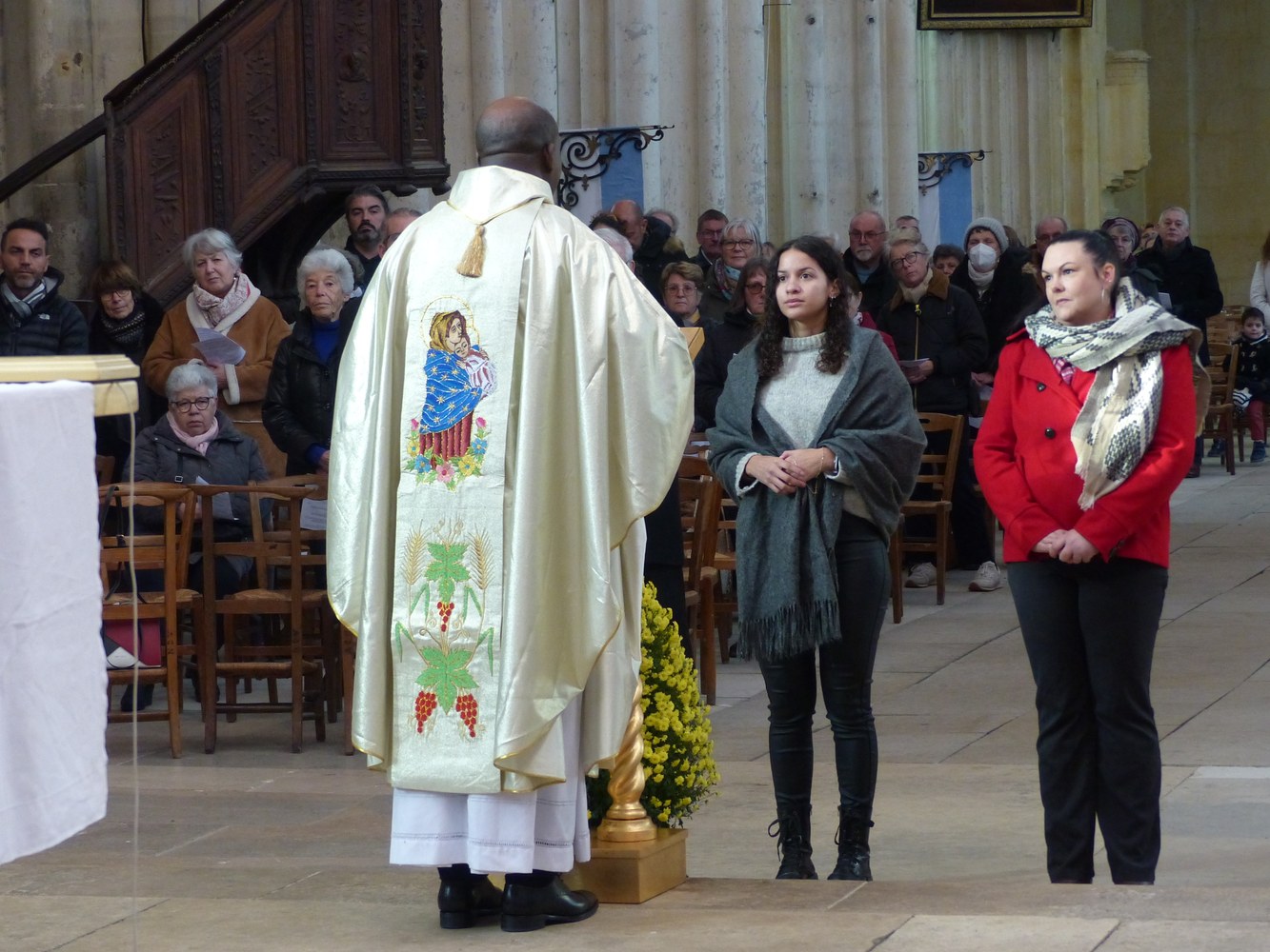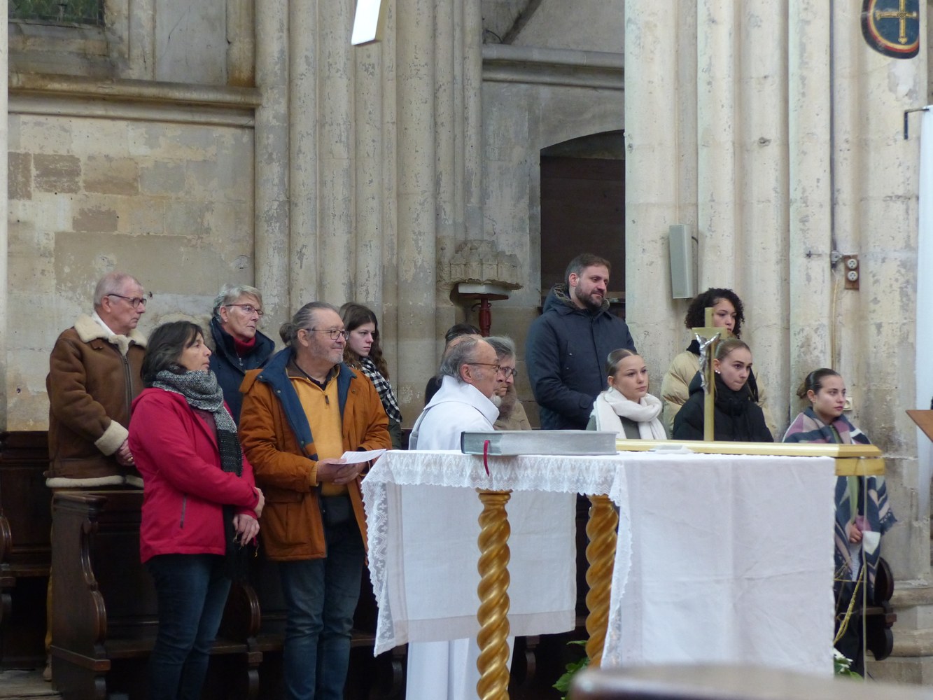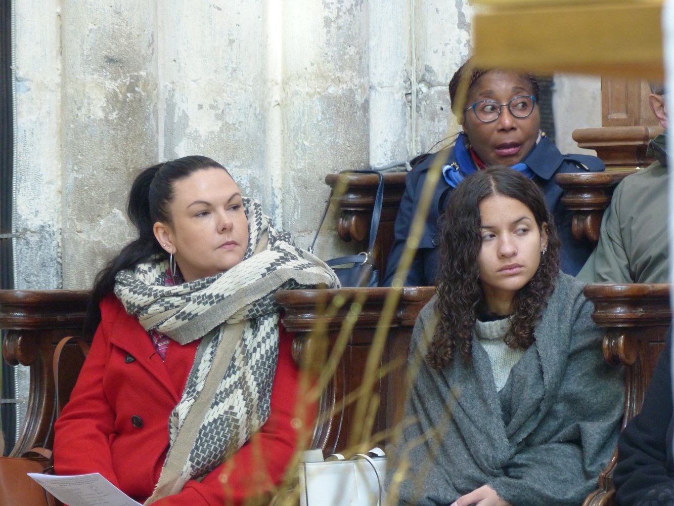 cinq catéchumènes ayant demandé le baptême sont présentés à la communauté chargée de les accueillir et les accompagner par la prière dans le parcours qu’elles ont entamé.
