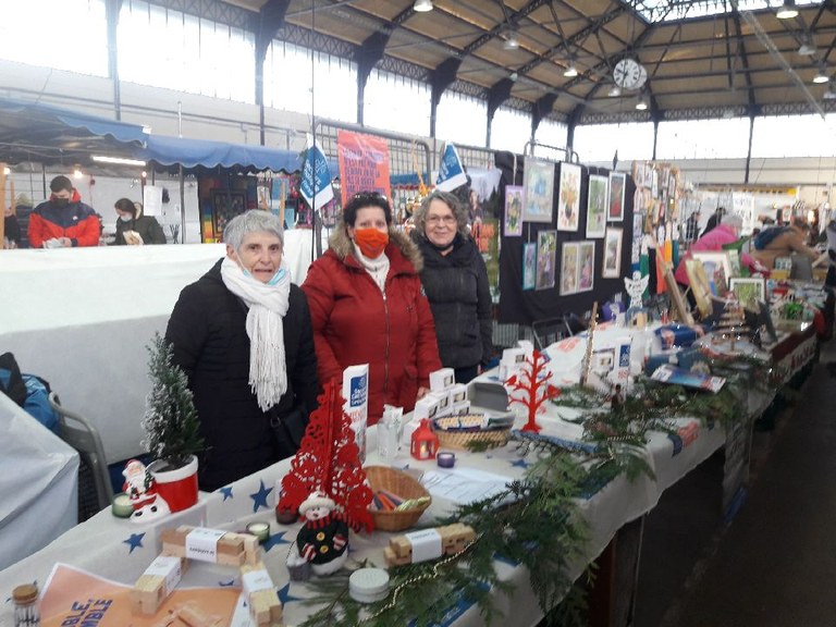 Le Secours Catholique de la paroisse Sainte Alpais est présent sur le marché de Noël de Villeneuve-sur-Yonne. En bonne position dans le marché couvert les bénévoles de l'association sont particulièrement investis. Il nous proposent de petits achats mais surtout le sens de Noël par la solidarité. En première ligne se trouve la petite crèche en bois... Merci aux bénévoles du café sourire du Secours catholique local.