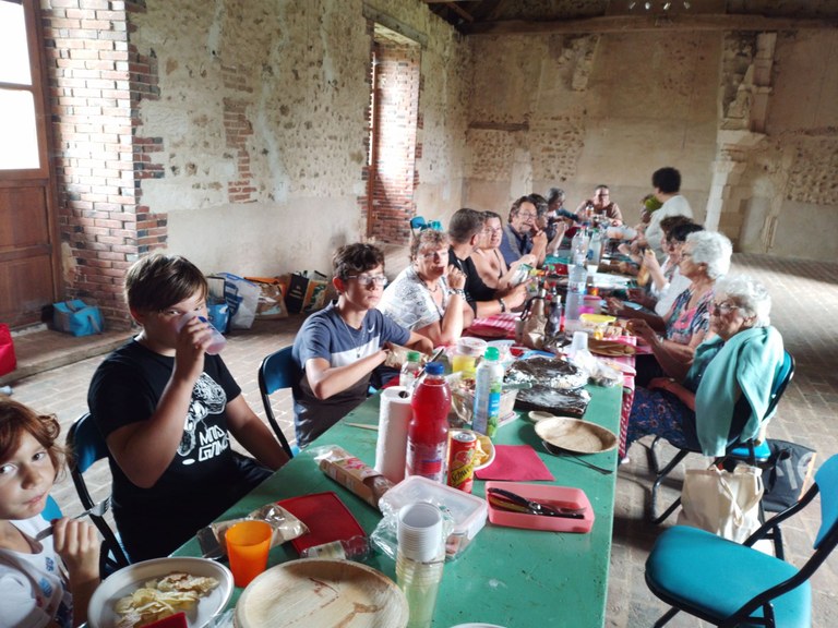 Bernard Toullier (de l’association des amis du prieuré) nous attendait au prieuré, des personnes accueillies et des responsables des ateliers St Maurice du Secours Catholique de Sens (équivalent du café sourire) sont venues partager notre journée .