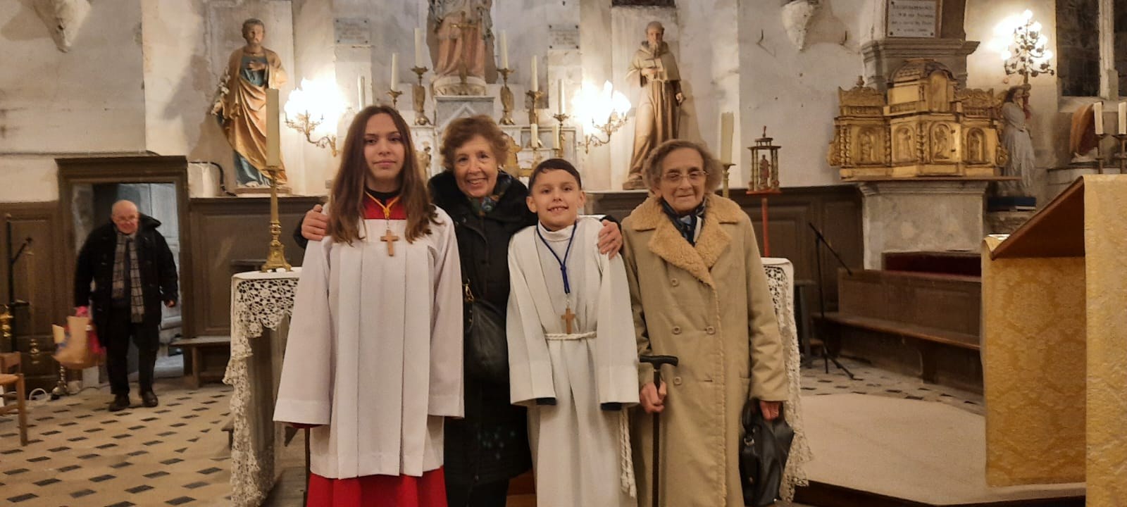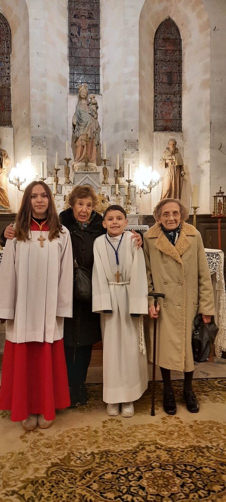 Samedi dernier lors de la messe anticipée de l'Epiphanie à Villevallier, Maxence servant d'autel que nous connaissons tous, a communié pour la première fois entouré de sa famille et de la communauté paroissiale