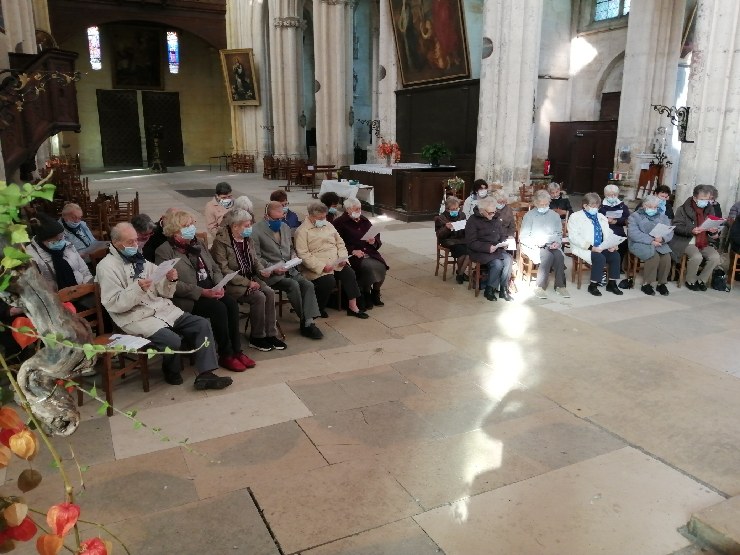 Une petite assemblée entourait ce matin Colette et Elisabeth, deux sœurs Dominicaines Missionnaires des Campagnes qui fêtaient leurs 70 ans...de vie religieuse au cours d’une messe. Entourées d’autres sœurs et notamment de Jacqueline et Bernadette, DMC elles -mêmes et piliers de notre communauté, Colette et Elisabeth ont partagé ce que furent ces 70 ans et donné un témoignage de fidélité, de disponibilité à l’Esprit et de charité vécue tout au long de ces années. Quelques photos ont immortalisé ce beau moment clôturé par un verre de l’amitié préparé avec une recette importée de Lorraine, pays des sœurs Colette et Bernadette.