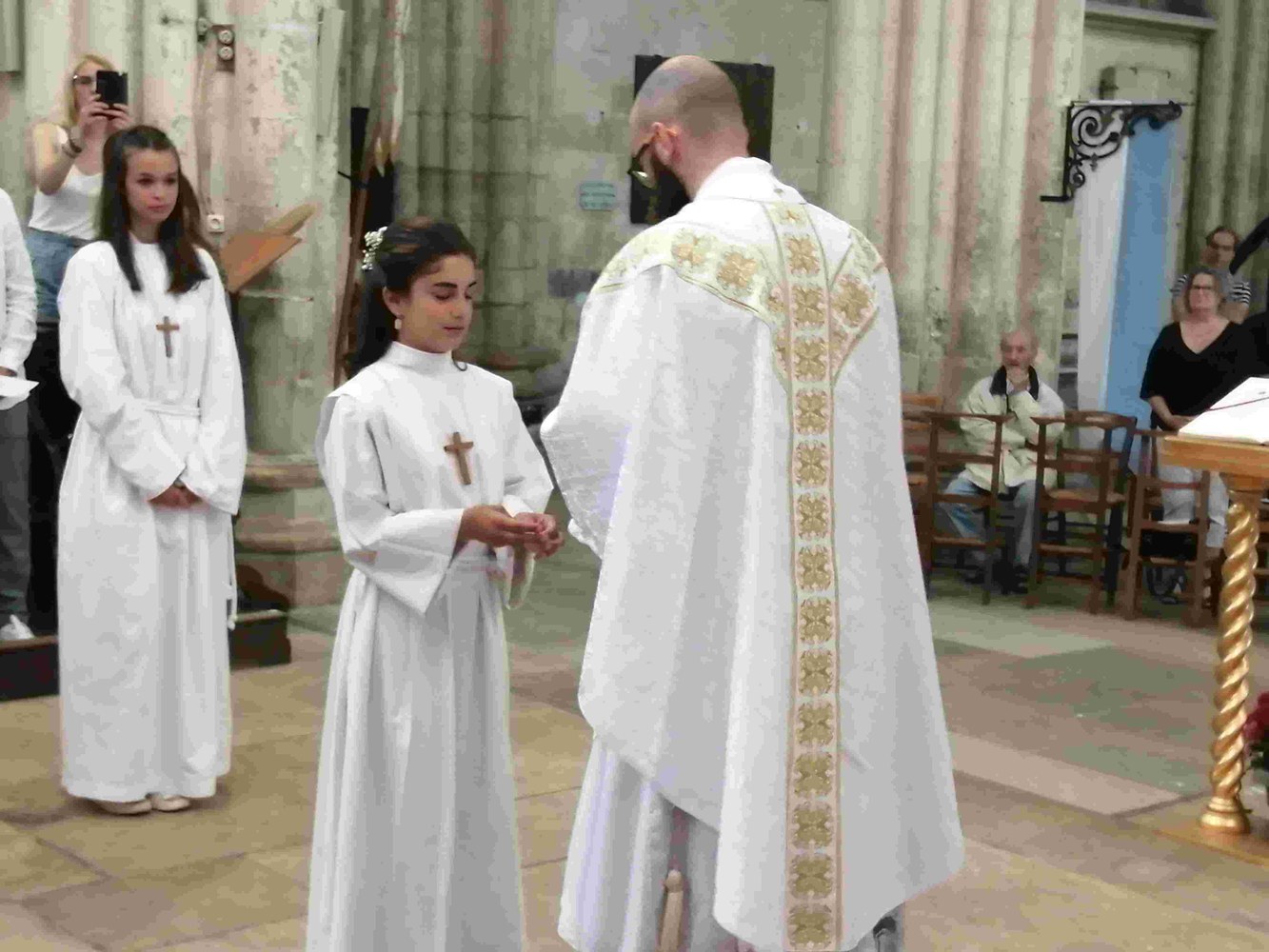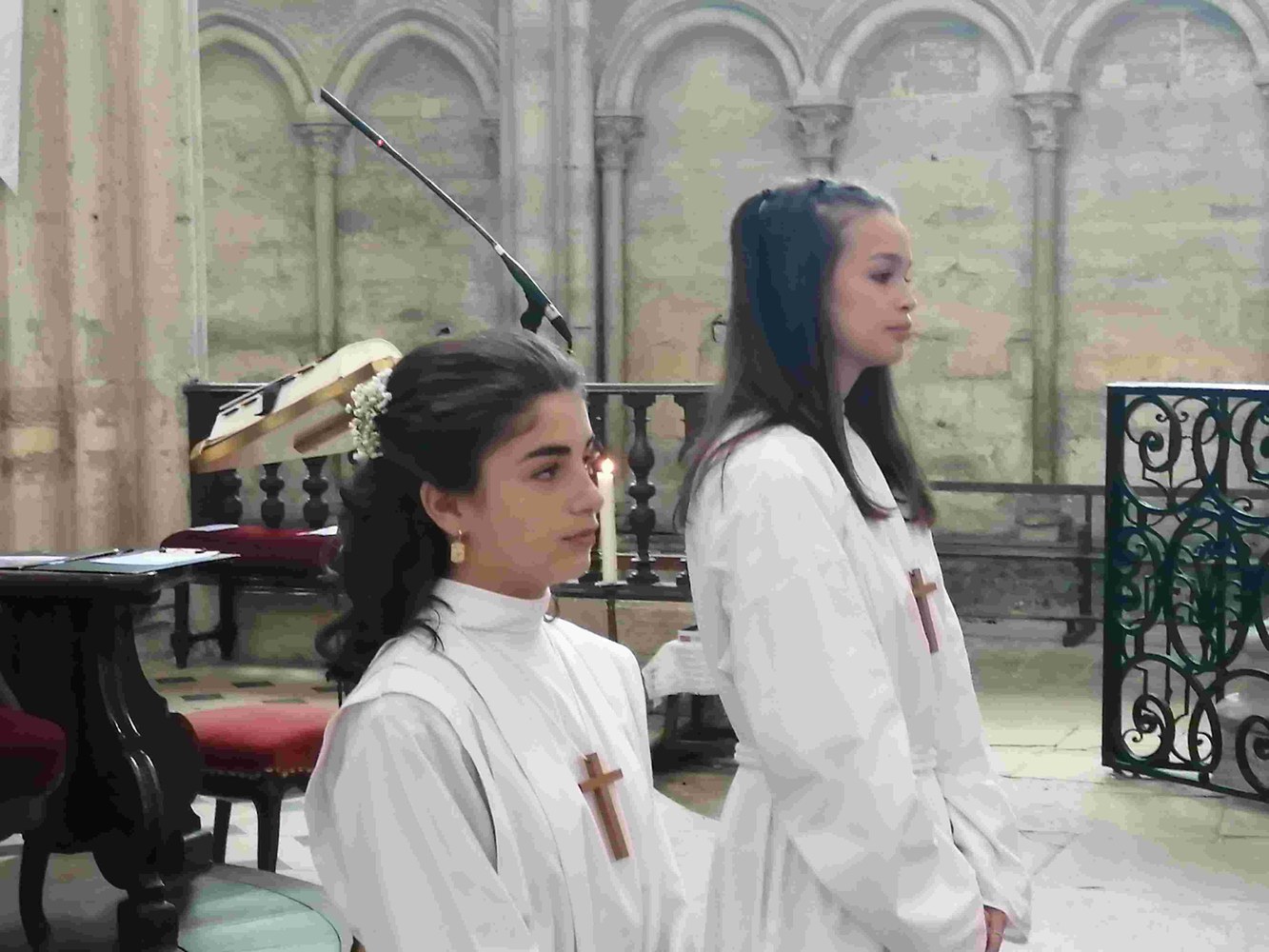 Le chant de méditation suivant la communion faisait écho à ce moment vécu dans une forme de solennité par les deux adolescentes: "Dieu se livre lui-même en partage par amour pour son peuple affamé" et "aujourd'hui il allume une flamme pour que nous l'aimions jusqu'au bout": beau programme de vie pour Agathe et Salomé mais aussi pour chacun de nous...