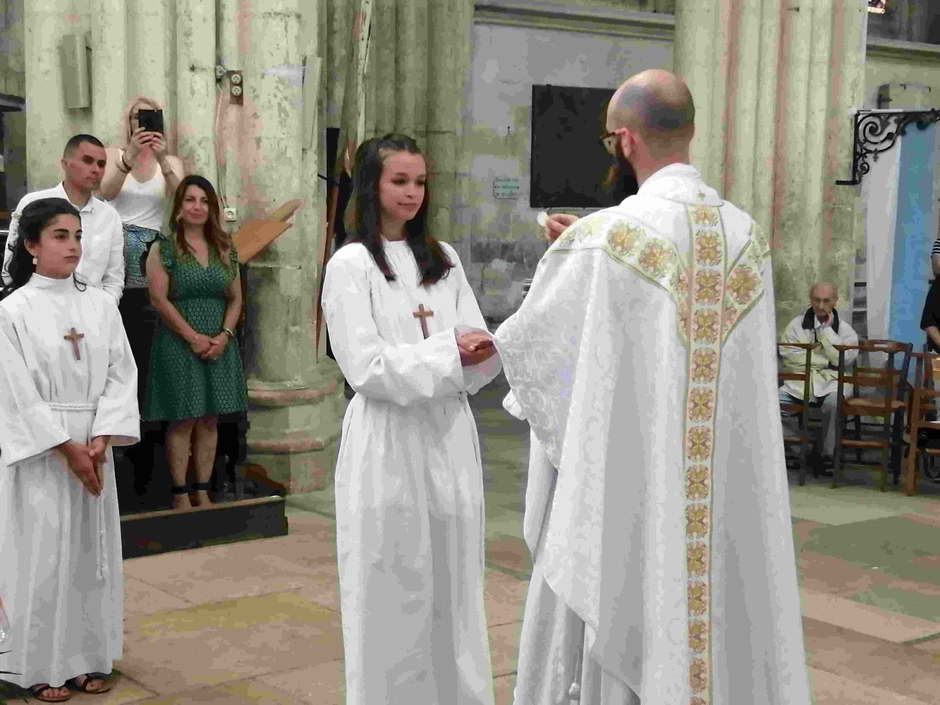 Le 19 juin , fête du Saint Sacrement, deux fidèles servantes d'autel dont les visages nous sont connus, Salomé et Agathe, communiaient pour la première fois au corps du Christ au milieu de leurs familles et de l’assemblée dominicale qui les entouraient.