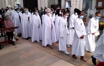 Finalement un vent tout particulier, le vent de l'Esprit à n’en pas douter, a fini par souffler, dissipant tous les nuages d''interrogations et c'est une très belle célébration qui réunit les 14 confirmands et 7 communiants, certains recevant les deux sacrements ce jour là, ainsi que leurs familles et amis.