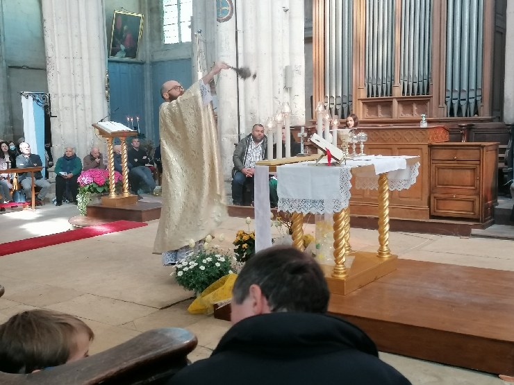Comme la veille lors de la Vigile Pascale à Saint-Julien-du-Sault, l'assistance était nombreuse lors de la messe de Pâques célébrée en l'église Notre Dame de l'Assomption de Villeneuve-sur-Yonne.