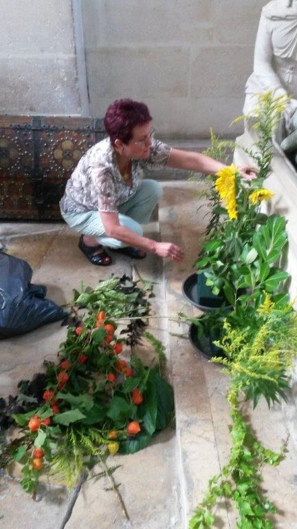 La journée sur le fleurissement liturgique organisée samedi 20 août à l'initiative du pôle Célébrer de l'EAP et grâce à la participation de Claudie LEQUIEN (chargée du fleurissement de St Florentin-Brienon) a réuni 12 personnes intéressées par le sujet (plusieurs autres personnes volontaires auraient voulu participer mais en ont été empêchées pour cette fois ; elles seront recontactées par la suite). Après une approche théorique, des exemples de bouquets liturgiques ont été commentés et expliqués, quelques documents ont été distribués et un petit repas convivial nous a permis d'échanger à bâtons rompus et de faire parfois plus ample connaissance. Après le repas le groupe s'est rendu à l'église, auprès de la Mise au tombeau afin de fleurir la chapelle sous la direction de Claudie. C'est l'amorce d'un groupe dédié au fleurissement qui s'est constitué là et qu'il va falloir maintenant organiser et pérenniser.