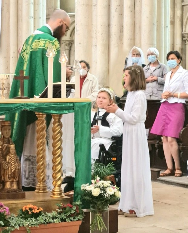 Jour de fête pour notre communauté paroissiale qui entoure ce dimanche 25 juillet deux jeunes filles pour leur première communion. A chaque communion c'est le Christ qui nous sauve par sa Passion et sa Résurrection.