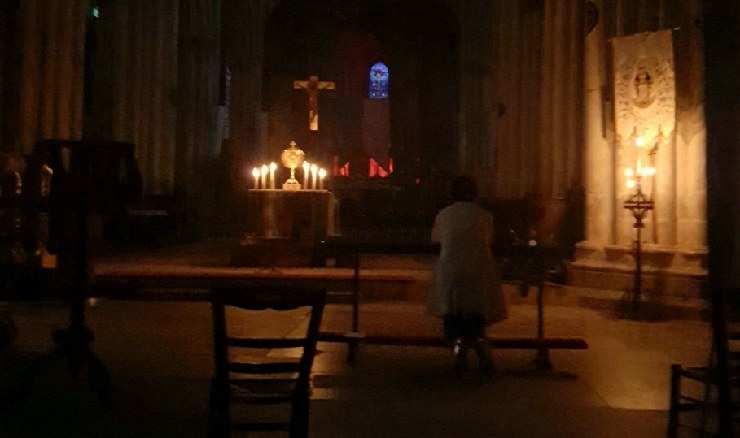 Un samedi soir tout en prière. 4h d'adoration dans les chants puis le silence, la lumière puis l'obscurité. Le Seigneur est là présent, venons adorons-le.