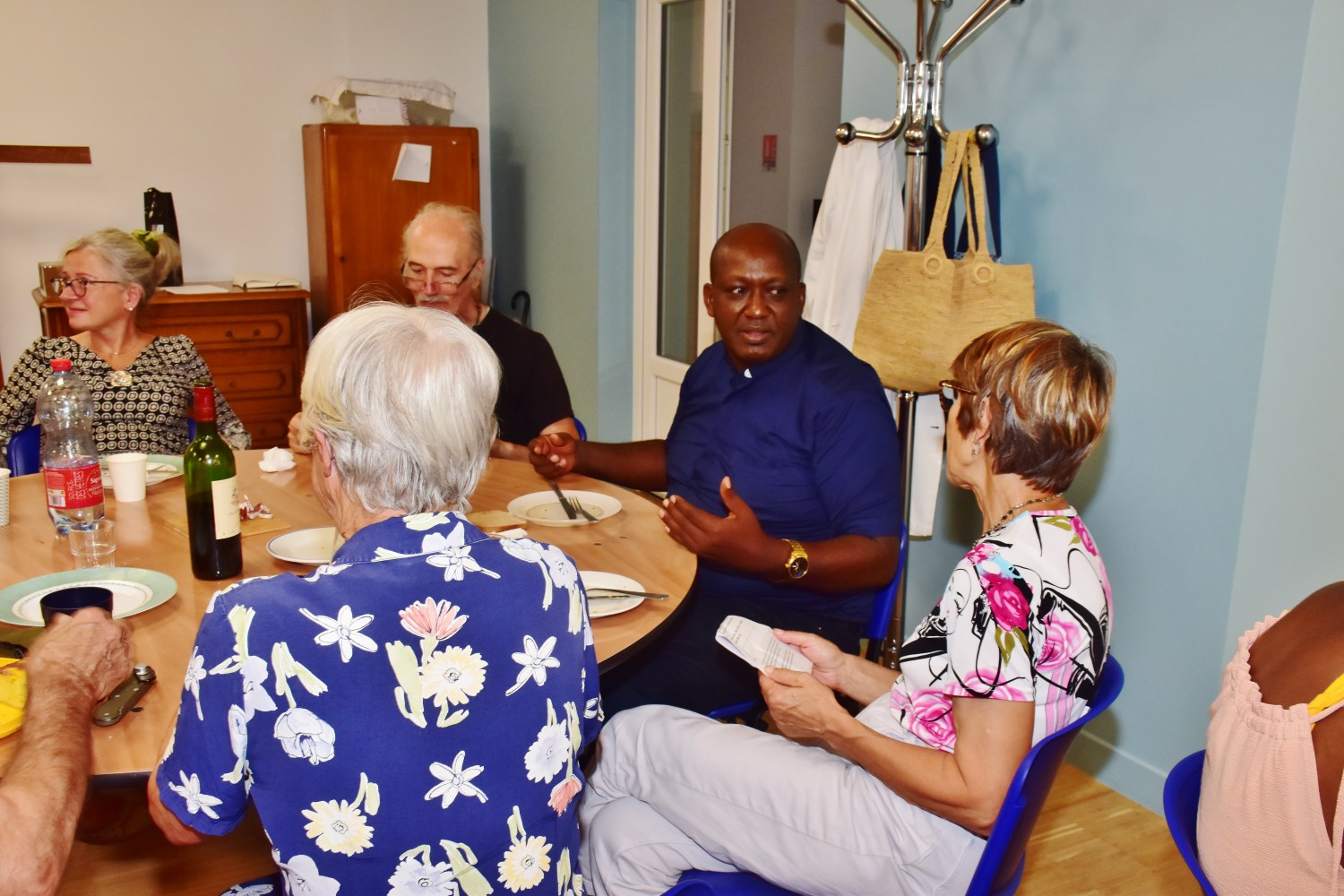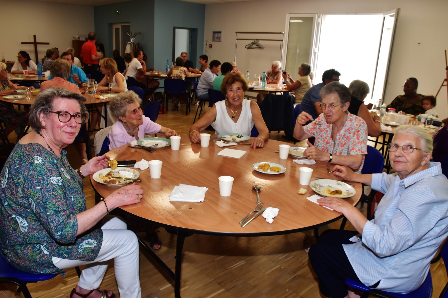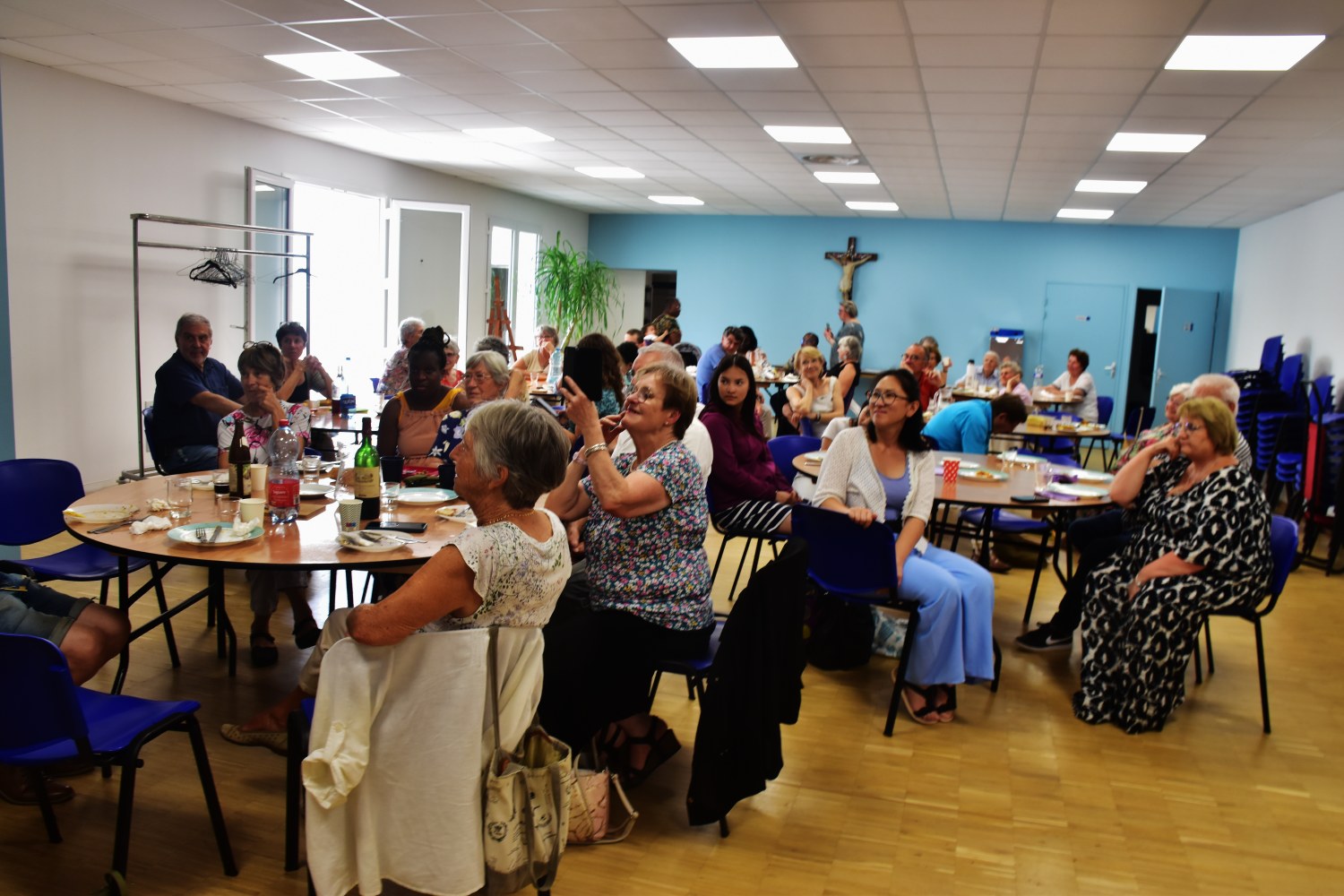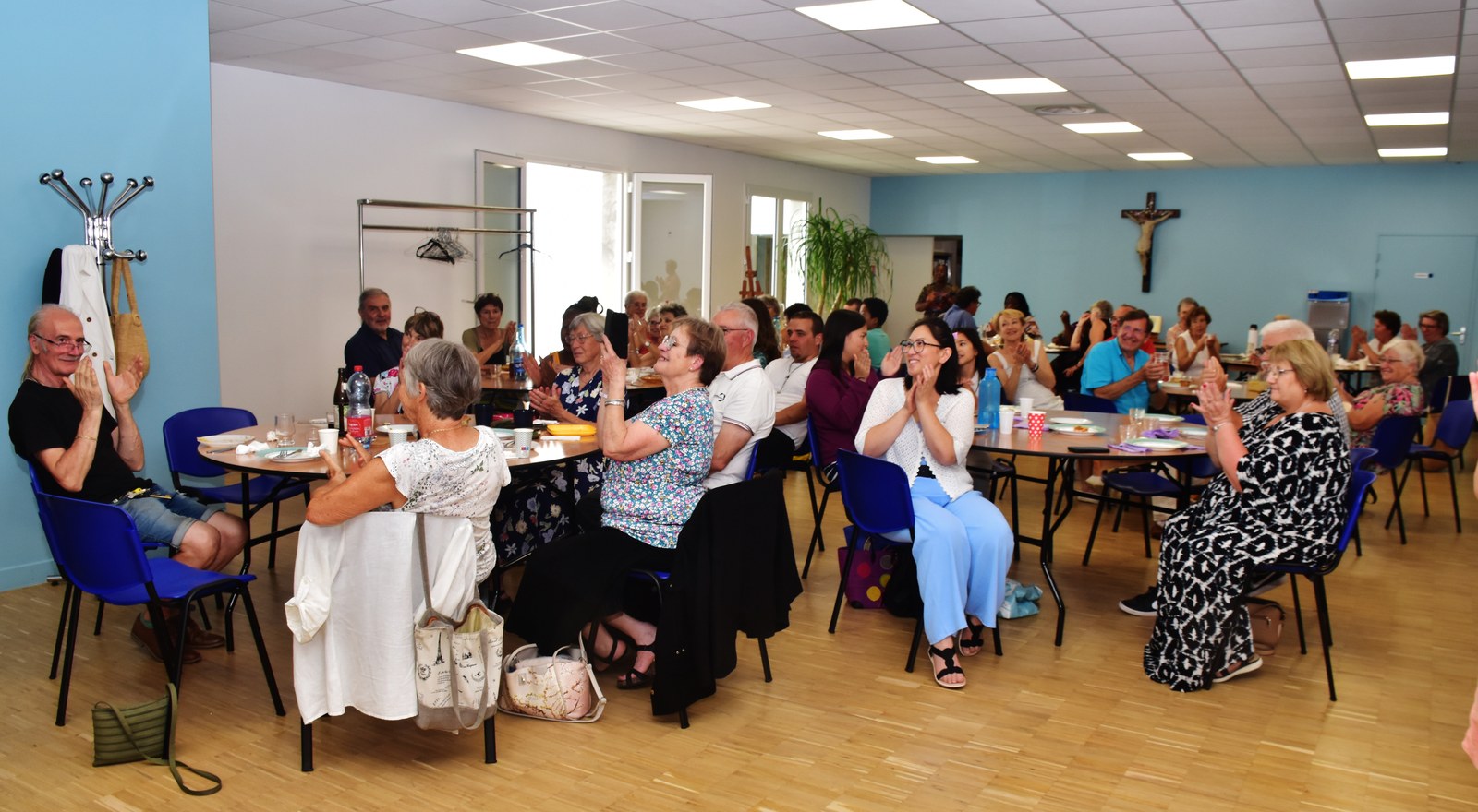 La messe a été suivie du repas paroissial , décalé pour la circonstance, au cours duquel une petite cinquantaine de personnes l’ont entouré dans une atmosphère joyeuse et conviviale.