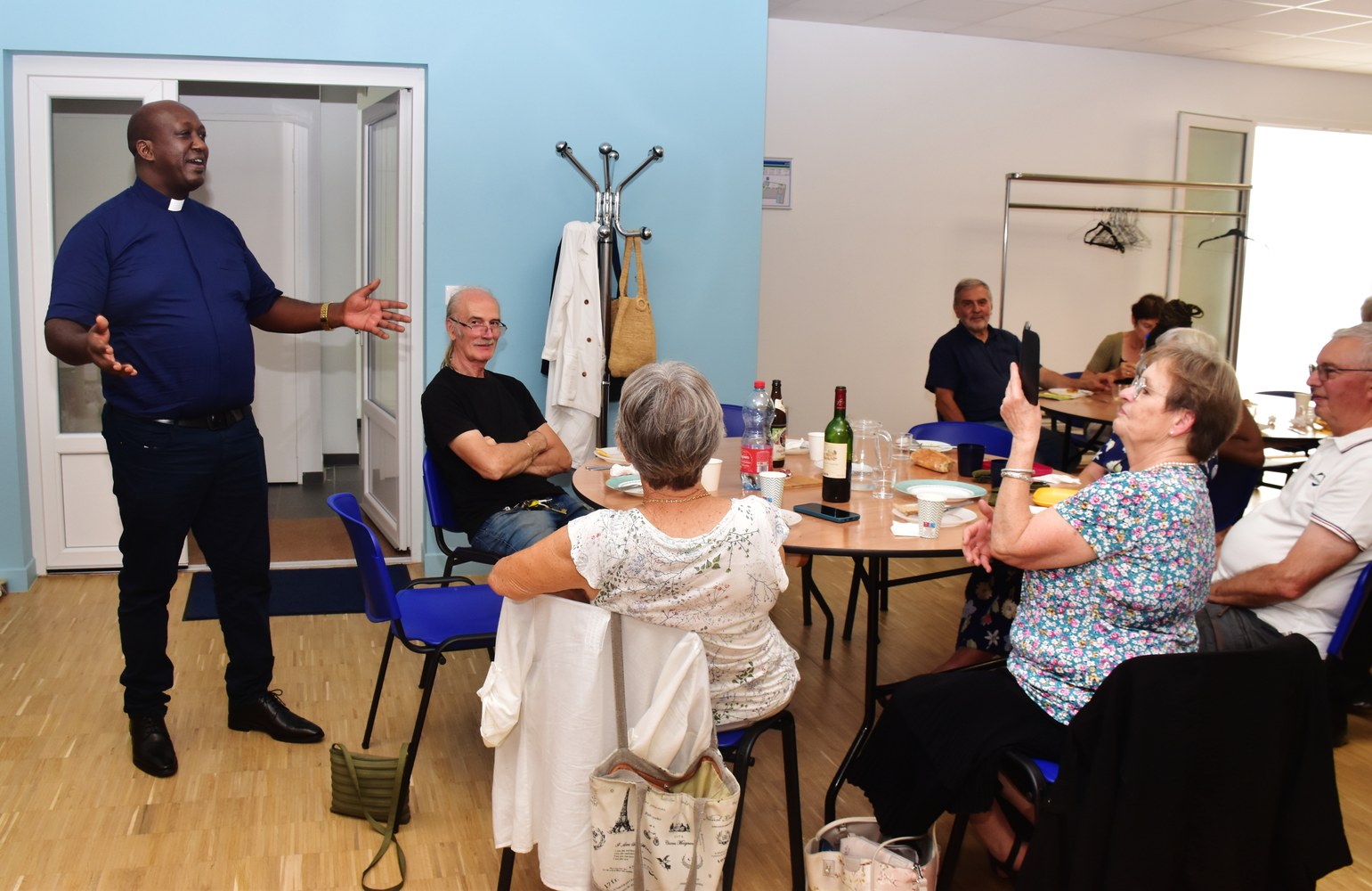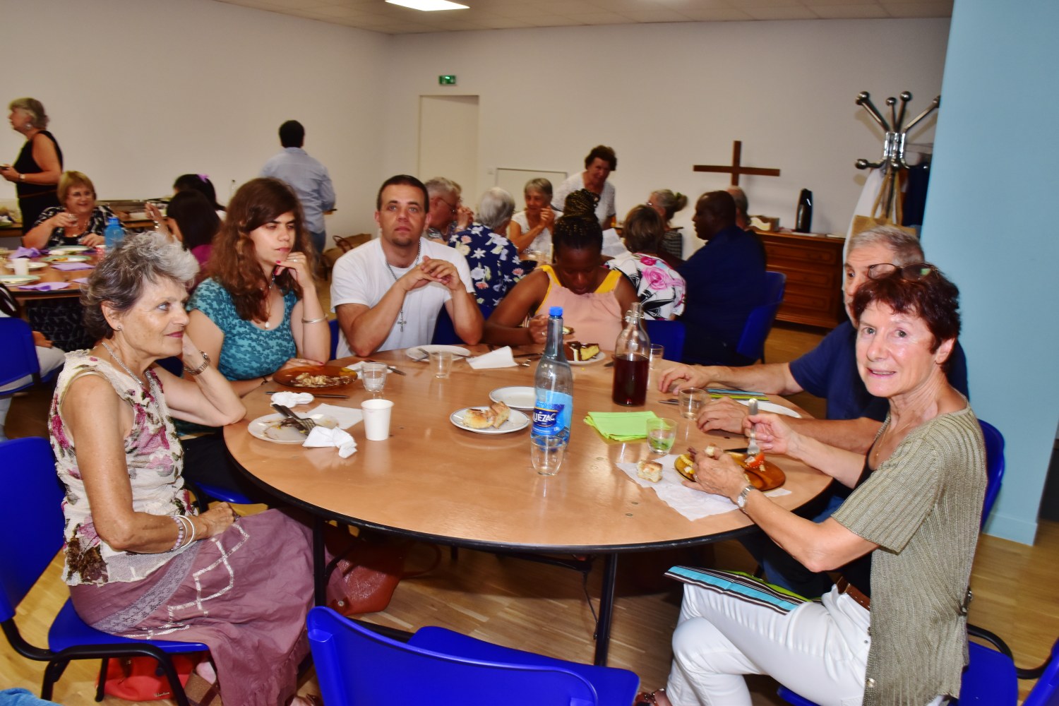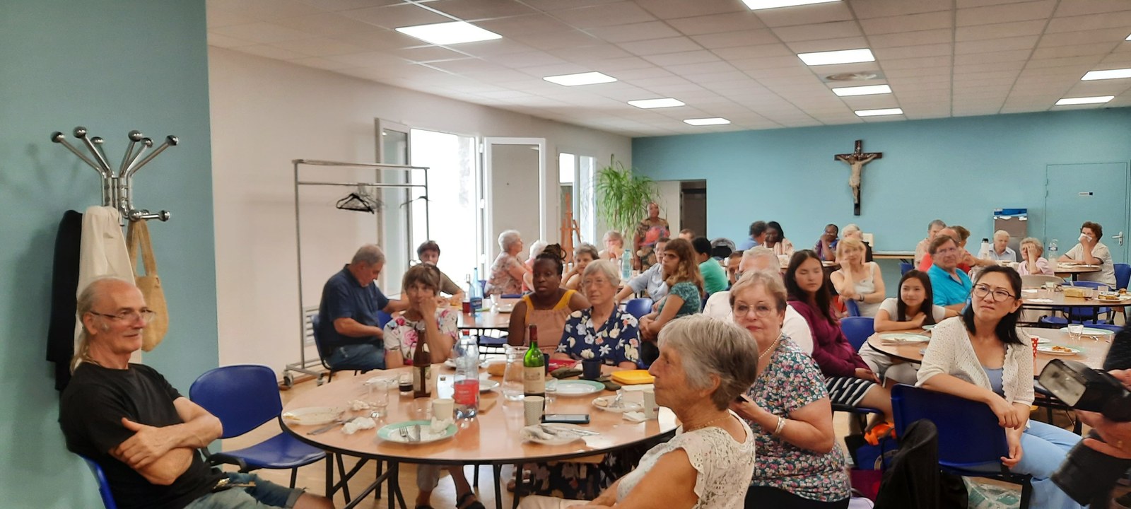 La messe a été suivie du repas paroissial , décalé pour la circonstance, au cours duquel une petite cinquantaine de personnes l’ont entouré dans une atmosphère joyeuse et conviviale.