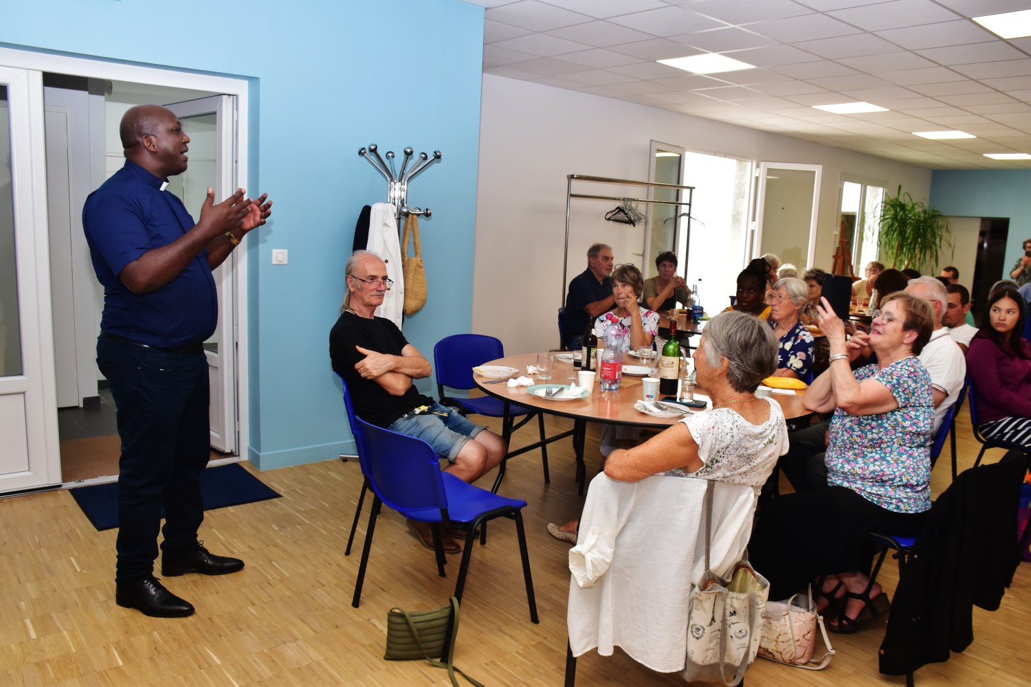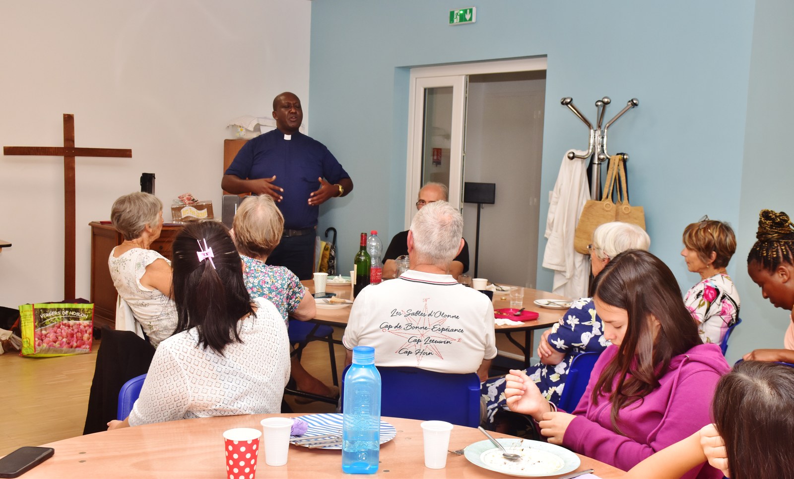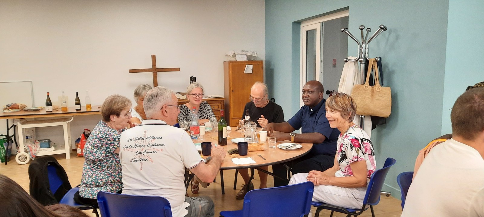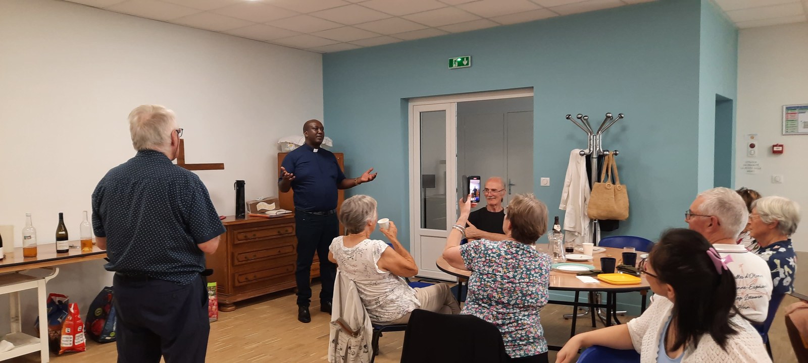 La messe a été suivie du repas paroissial , décalé pour la circonstance, au cours duquel une petite cinquantaine de personnes l’ont entouré dans une atmosphère joyeuse et conviviale.