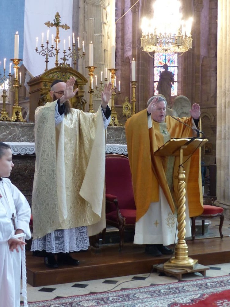 Le Père Joël Rignault, vicaire général, représentant notre évêque qui n’avait pu se rendre disponible présida la cérémonie avec le Père Romain.