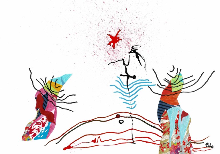 Entourant les œuvres colorées du peintre jovinien, les oeuvres de Paul Brock, plus dépouillées mais non moins fortes, suscitent le questionnement et éveillent la curiosité.
