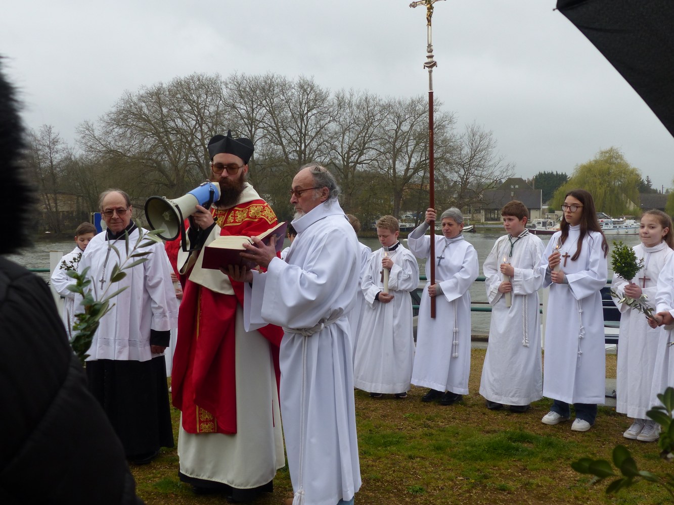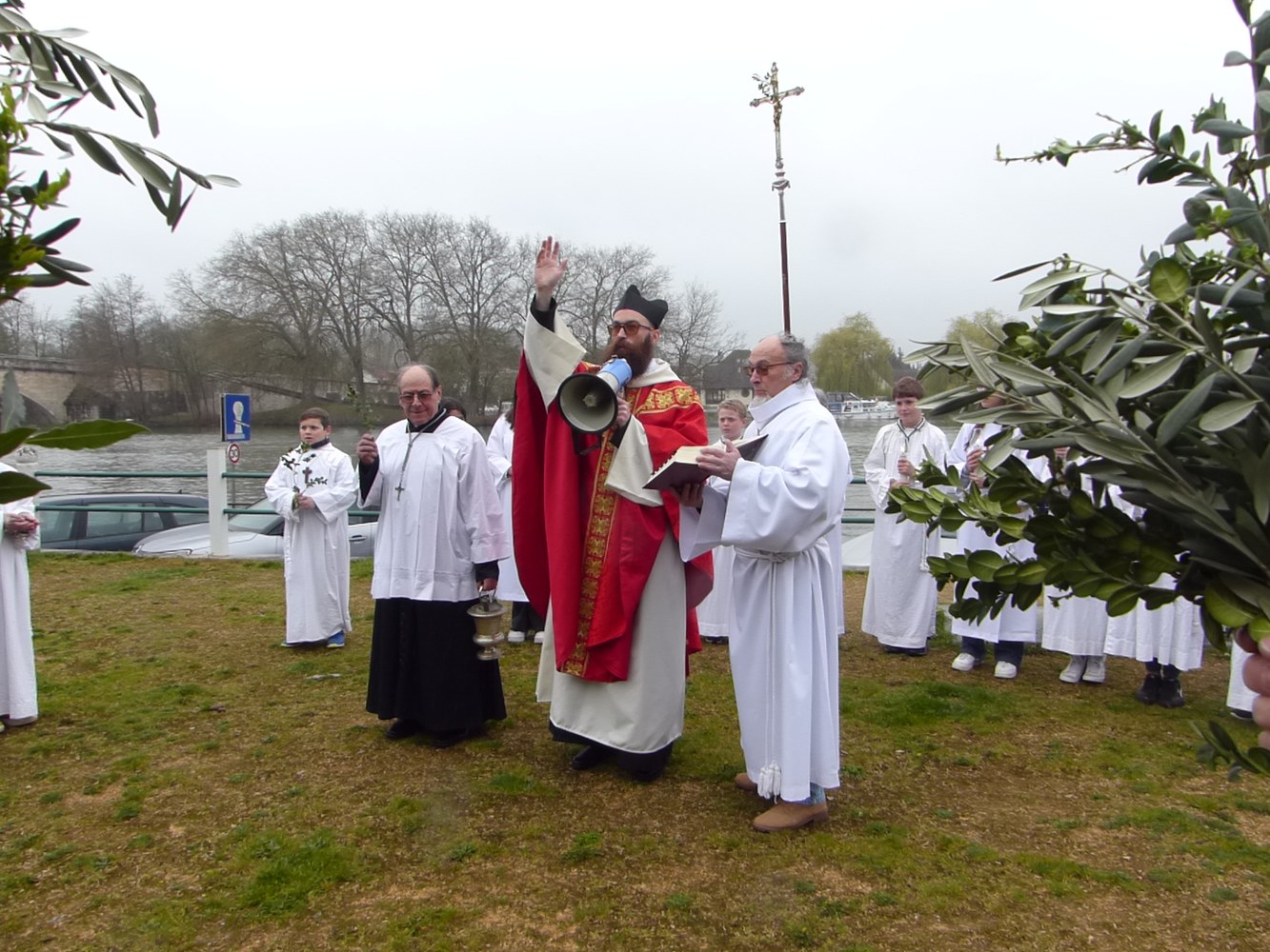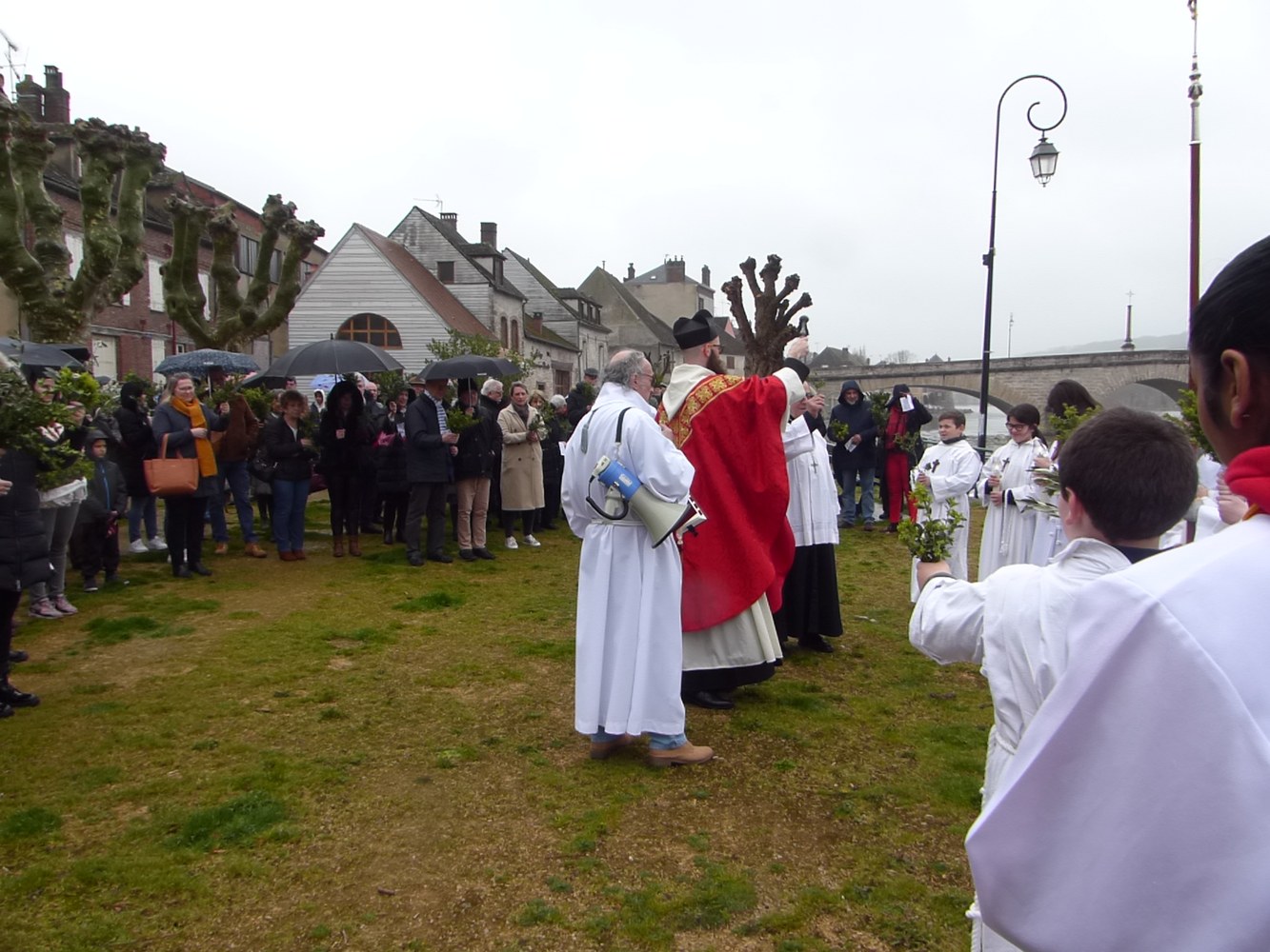 Le temps plus que maussade n’avait pas découragé les paroissiens venus nombreux sur les quais de l’Yonne pour la procession qui suivait la bénédiction des Rameaux.