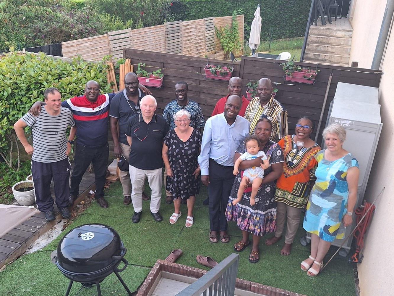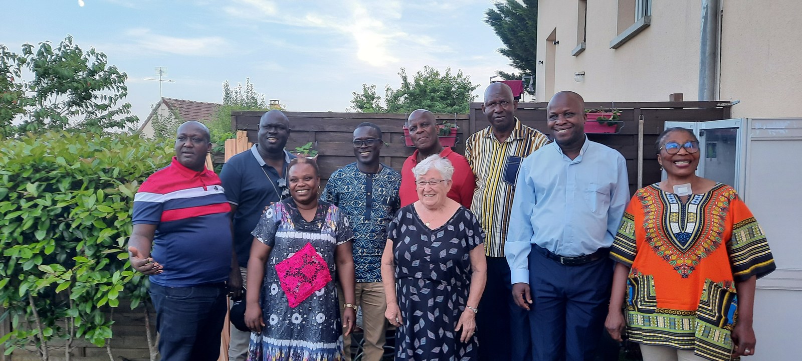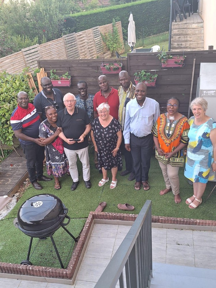 le temps d'un apéritif improvisé, Mgr Jean-Baptiste Manga,nouvel évêque de Ziguinchor s'est arrêté à St Julien du Sault afin de rencontrer les personnes du groupe "Fraternité" qui l'avaient accueilli et logé lors du remplacement de l'été 2022.
