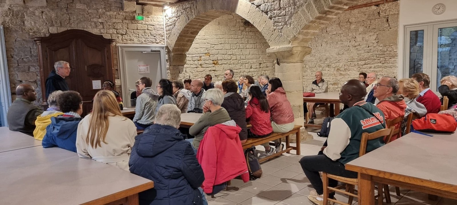 Un repas préparé par la communauté et pris ensemble nous réunit ensuite au Centre Saint-Bernard pour un moment de convivialité, lequel nous permit d’approfondir la connaissance mutuelle. Nous étions heureux de compter parmi nous quelques jeunes dont la présence a éclairé cette journée et de découvrir celle, chaleureuse et spontanée, du Père Zacharie.