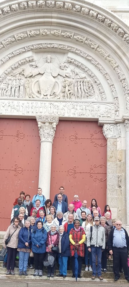 Un ciel bien gris accompagnait notre sortie paroissiale ce samedi 14 octobre 2023, sortie organisée à la demande de l’assemblée paroissiale avant que des bouleversements ne viennent apporter quelques modifications à cette organisation. C’est donc accompagnés par le Père Zacharie Niyonzima, du Burundi, que les participants à cette sortie sont partis pour Vézelay. Voyage sans encombre jusqu’au site magnifique de la “Colline éternelle”.