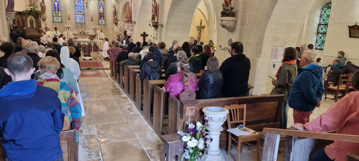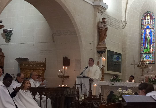 Une très belle messe chantée par la chorale Saint Michel a enchanté les quelques deux cent cinquante personnes présentes. Dans son homélie, le père Joël Rignault a conseillé de demander de l'aide à la sainte pour rajeunir : rajeunir notre foi, notre espérance... et de penser à sainte Alpais qui se nourrissait uniquement de l'eucharistie. Nous recevons vraiment Jésus au moment de la communion... "C'est une vraie rencontre!".