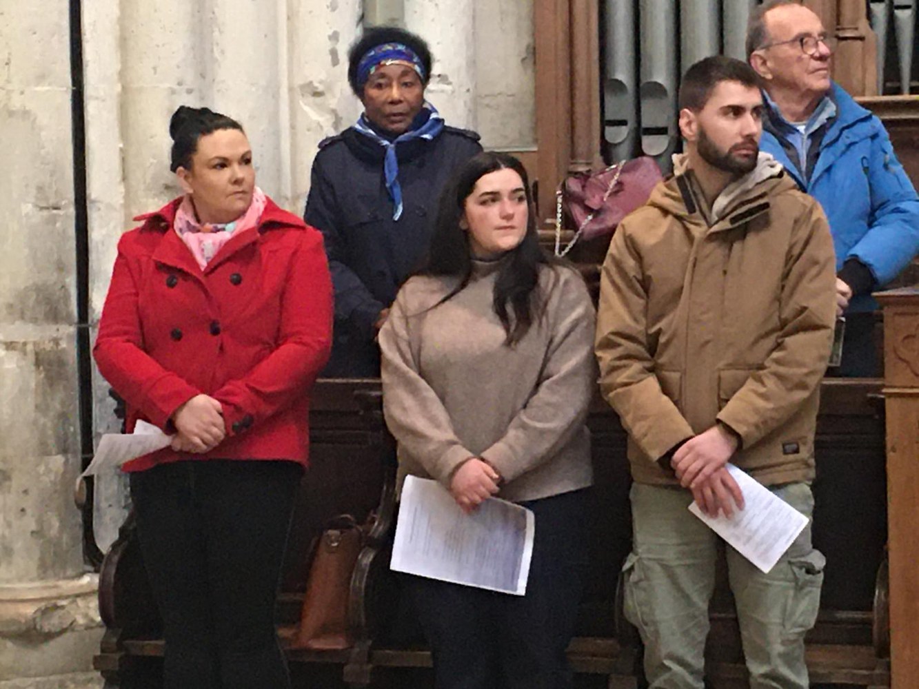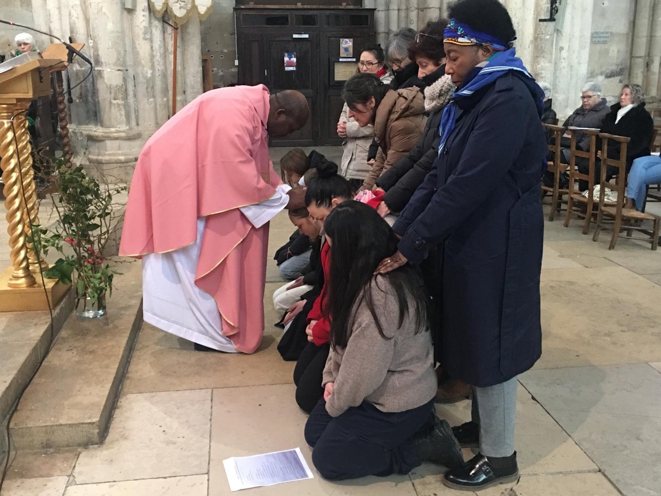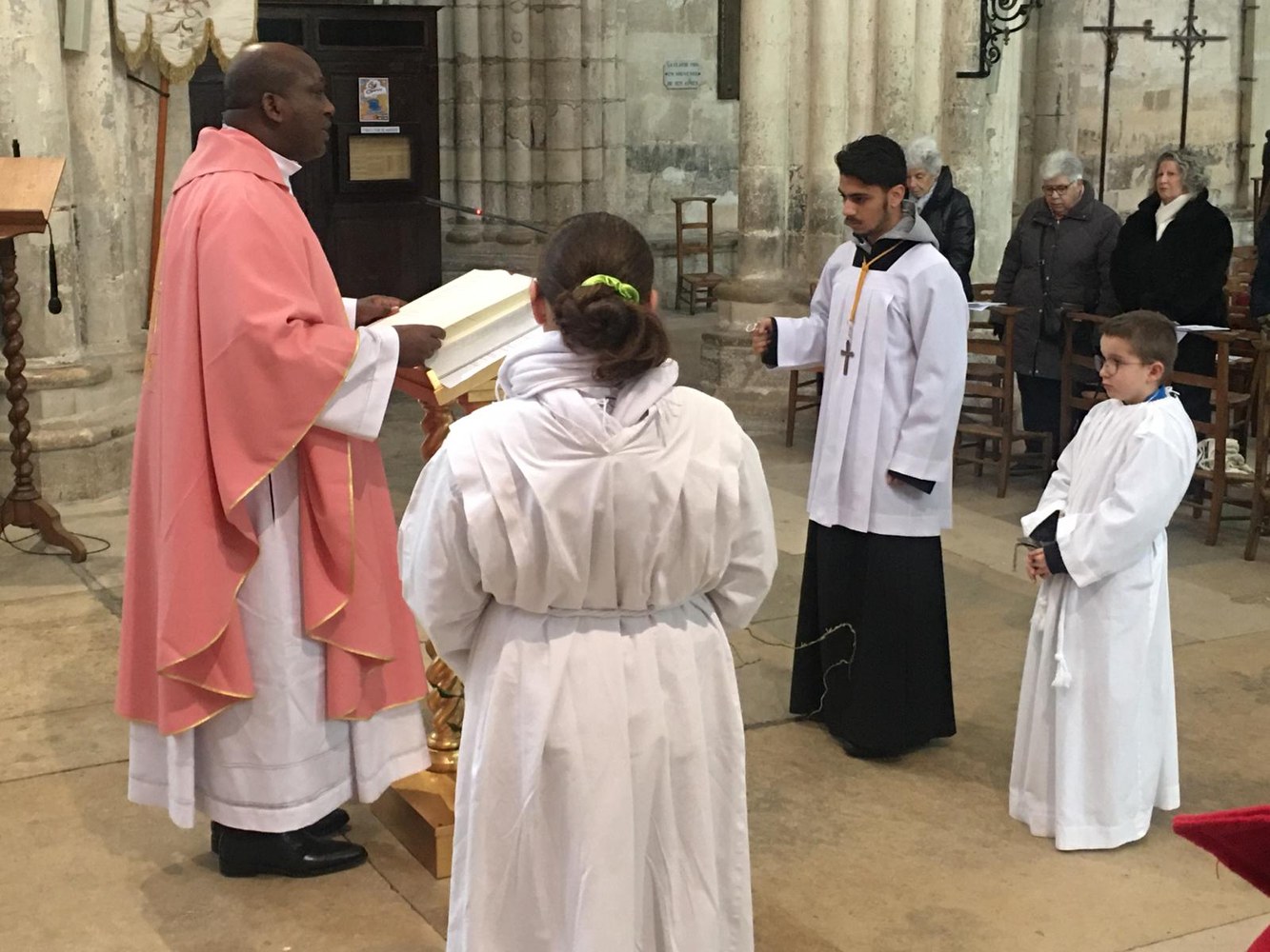 Le dimanche 10 mars, quatrième dimanche de Carême, a eu lieu la célébration de l’un des 3 rites pénitentiels que l’on appelle « scrutin ». Le mot évoque le discernement entre la lumière et les ténèbres, c’est un temps spirituel pour voir « clairement ». Les catéchumènes ont été invités à la conversion, à se tourner vers le Seigneur pour se voir à sa lumière et discerner ce qui, dans leur vie, peut faire obstacle à l’amour de Dieu. Ce moment, s’est déroulé dans le recueillement et était empreint d’une certaine solennité.