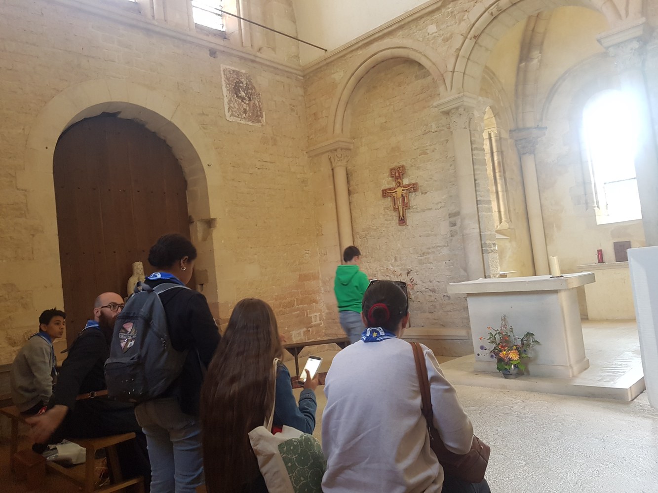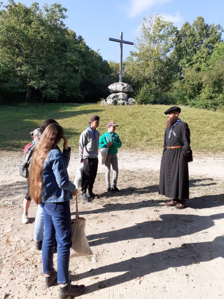 Première étape spirituelle du camp d'aumônerie : Vézelay pour visiter la petite chapelle du couvent franciscain... Prière devant les reliques de Sainte Marie Madeleine et partage avec joie de la messe dans la magnifique basilique. Dans l'après midi joyeuse et fraîche baignade dans la rivière. Et pour finir, cuisine sur le feu bien préparé qui crépite pour de délicieux hot-dogs... sur bâtonnets.