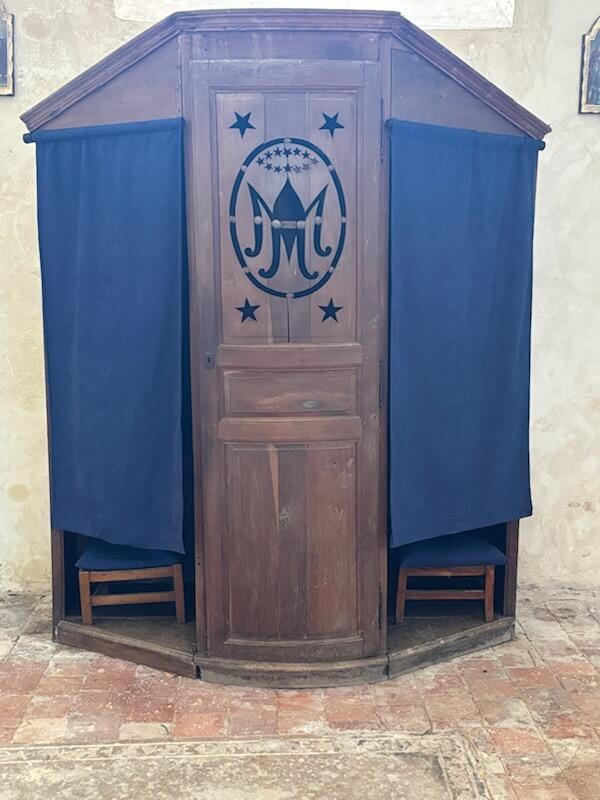 Le confessionnal de l'église de Dixmont a été récemment aménagé par des paroissiens que nous remercions. Des rideaux et des coussins ont été ajoutés pour garantir plus de discrétion et de confort. Le curé sera disponible pour les confessions avant chaque messe, facilitant ainsi l'accès à ce sacrement important.