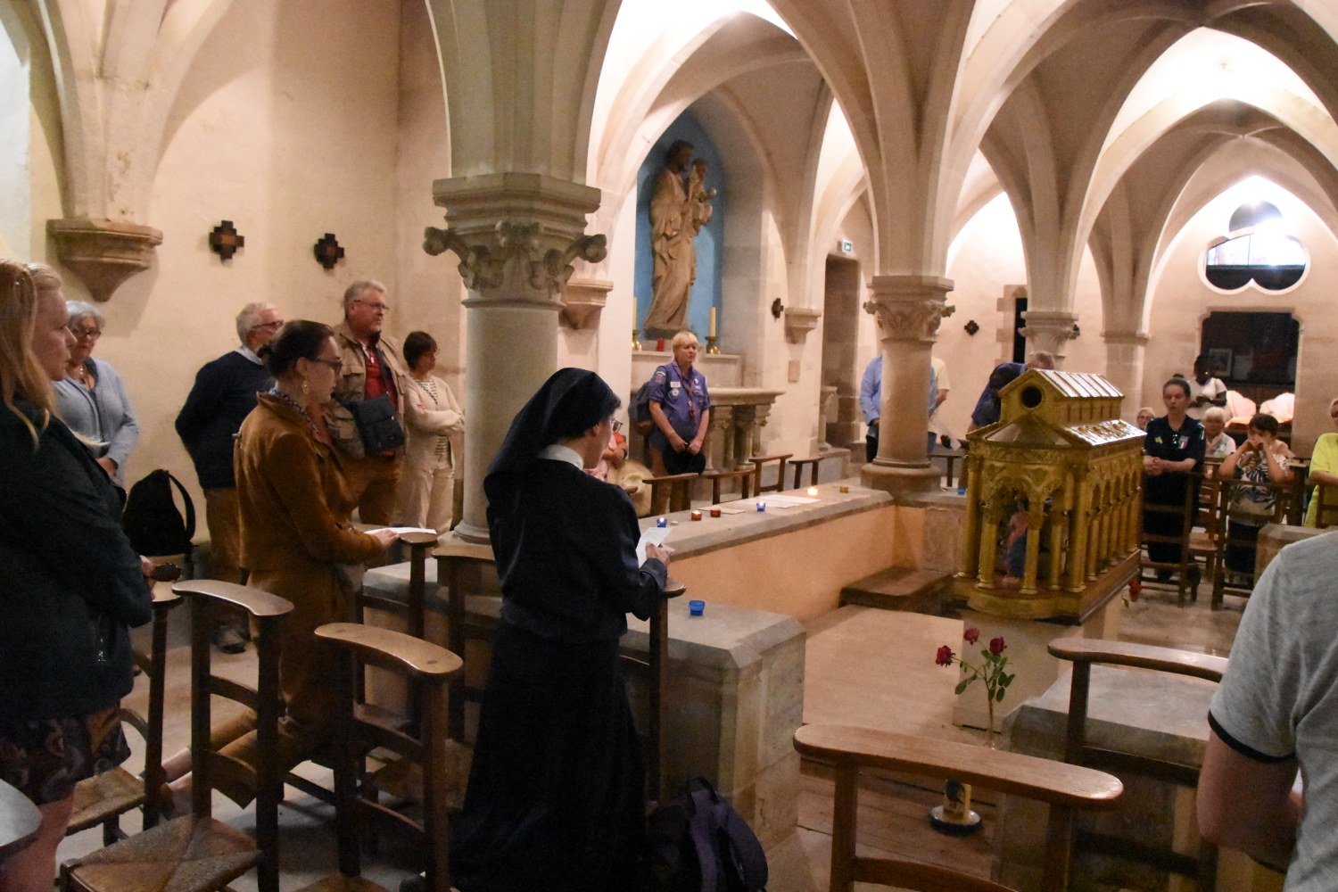 Prière à la crypte auprès des reliques de Sainte Colombe.