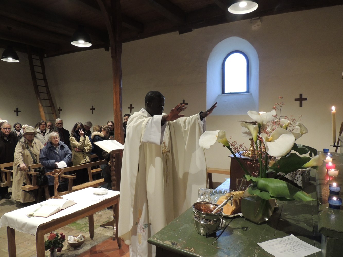 Malgré la pluie, il y avait beaucoup de monde à cette célébration de l'agriculture et des agriculteurs, et la petite chapelle était pleine.