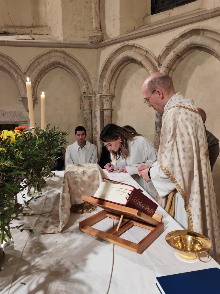 À la fin d’une Semaine Sainte riche en mystère et amour divins, la paroisse a eu la joie de célébrer le baptême de quatre catéchumènes : Morgane, Manon, Florian et Andrea. Âgés de 17 à 27 ans, ils se sont préparés avec sérieux au grand jour, ou plutôt à la grande nuit durant laquelle ils deviendraient enfants de Dieu. Une assemblée nombreuse était venue célébrer avec eux la victoire de la Résurrection.