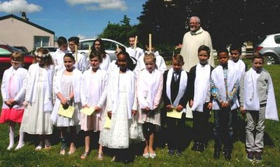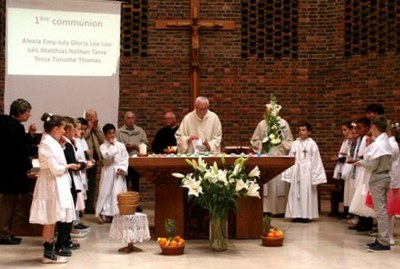 ► 11 jeunes qui demandaient le sacrement de l’eucharistie pour la première fois : Alexia, Emy-July, Gloria, Léa-Lou, Léo, Matthias, Nathan, Tania, Tessa, Thimothé, Thomas.