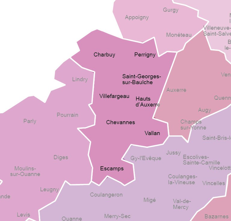 La paroisse "Sainte-Reine - Auxerre Val de Baulche" est née en février 2016 du regroupement des anciennes paroisses de Chevannes-Escamps-Vallan-Villefargeau, des Hauts d’Auxerre et de Saint-Georges-Charbuy-Perrigny.