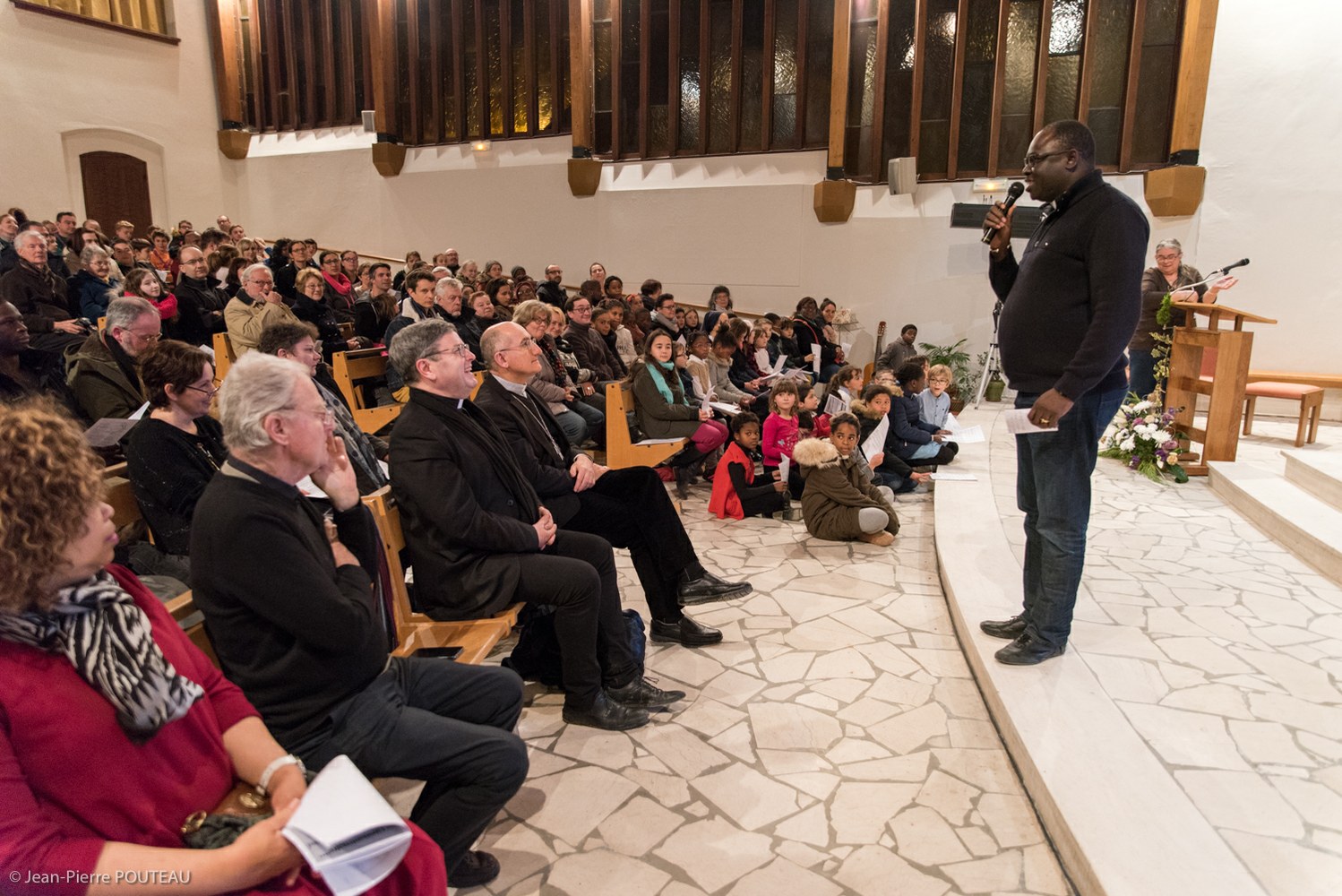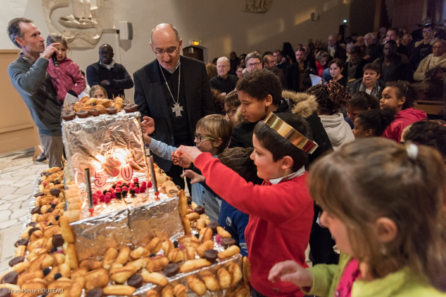 Célébration du cinquantenaire de l'église Notre-Dame au Chemin Neuf de Paron en présence de Mgr GIRAUD, du père Jean-Michel TENDENG, des anciens curés de la paroisse Roger FIRA, François CAMPAGNAC et surtout de son bâtisseur : le Père Lambert DOHMEN.