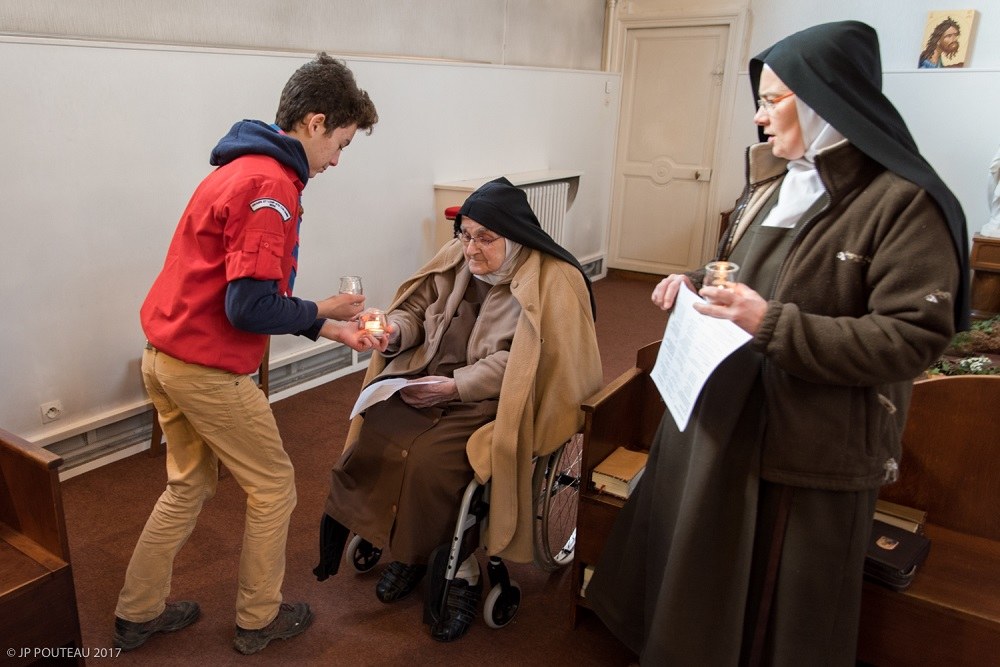 Allumée dans la grotte de la Nativité, la Lumière de Bethléem était accueillie ce jour au sein de la communauté des Carmélites lors d'un temps de prière, et donnée à tous pour illuminer ce temps de Noël.