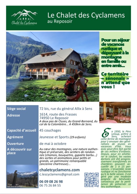 Le chalet des Cyclamens, ancienne colonie de vacances sénonaise en montagne, devenue gîte de séjour agréé Jeunesse et Sport, vous accueille à la belle saison dans une nature préservée.