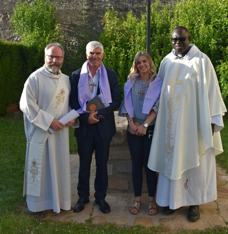 Annaëlle et Raymond, accompagnés du Père Tendeng et de Marcel Giamberardino (diacre)