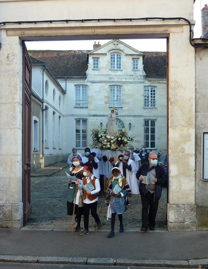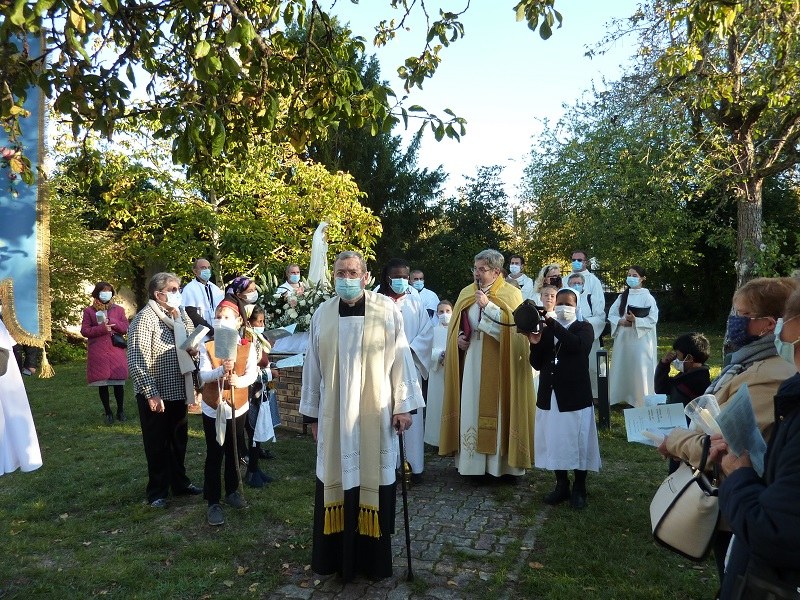 Samedi 10 octobre, les communautés française et portugaise se sont retrouvées dans les jardins de l'Archevêché autour de la Vierge de Fatima, magnifiquement fleurie pour l'occasion. Accompagnée par les chants des Petits Chanteurs de l'Etoile, la procession a cheminé jusqu'à la cathédrale où ont eu lieu la messe et la consécration à la Vierge.