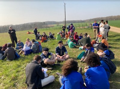 Ensemble ils ont marché de Vaumort à Cerisiers par les bois et les champs, avec 3 étapes de réflexion sur la synodalité à partir du thème introductif « les compagnons de voyage ». Pour agrémenter ce travail, les animateurs leur ont fait découvrir un texte d’Évangile : Les pélerins d'Emmaüs. Quelques chefs scouts ont joué le rôle des pélerins et de Jésus afin de rendre la scène vivante et d’introduire les questions sur l’Église.