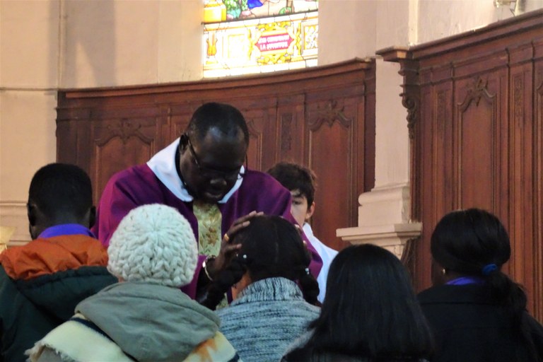Dimanche 18 mars, en l'église Saint Pregts de Sens, a eu lieu le dernier scrutin avant le baptême pour 4 catéchumènes, avec le Père Jean-Michel Tendeng - prêtre accompagnateur. 6 catéchumènes, en effet, vont recevoir le Baptême des mains de Mgr Giraud au cours de la prochaine Vigile pascale en la cathédrale de Sens.