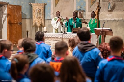 La messe présidée par le Père Jean-Eric, secondé par le Père Célestin et le Père Samson, nous a rassemblés en musique à l’église du village. A la fin, les jeunes ont reçu la lettre des Pères synodaux remise par les prêtres.