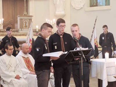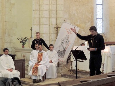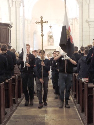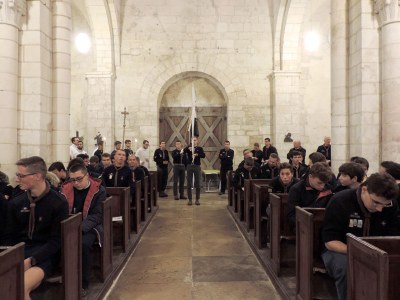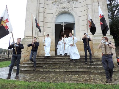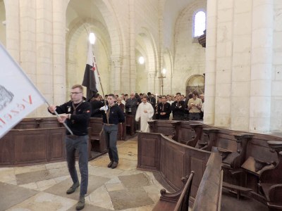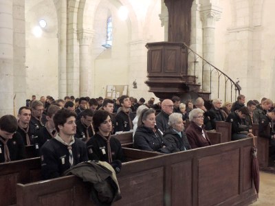 Environ deux cents scouts très fervents se sont réunis vers 13 h 30 le jeudi 31 octobre dans la belle église romane Saint-Romain de Druyes-les-Belles-Fontaines. La procession d’entrée était accueillie avec le chant Ô Dieu, Seigneur des puissances.