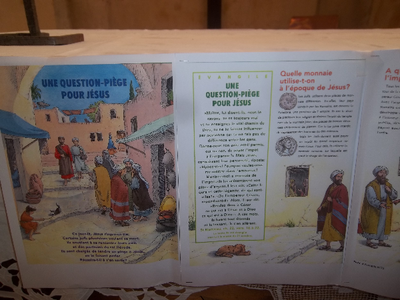 Après la lecture de l’évangile, les enfants ont interprété une saynète autour de cette question piège « Donne -nous ton avis : est-il permis de payer oui ou non de payer l’impôt à l’empereur ?