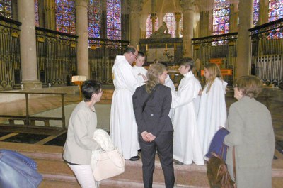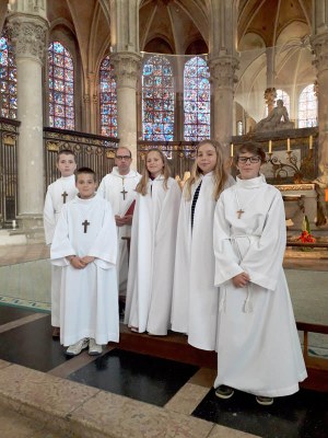 Lors de la messe du 12 mai à Druyes-les-Belles-Fontaines (journée de l’amitié de l’Hospitalité du diocèse), les cinq enfants servants d’autel Marie, Louanne, Antonin, Noé et Victor ont été invité par Florent DENIEUIL, animateur du groupe des servants de la paroisse Saint-Germain d’Auxerre à venir servir une messe à la cathédrale Saint-Étienne.
