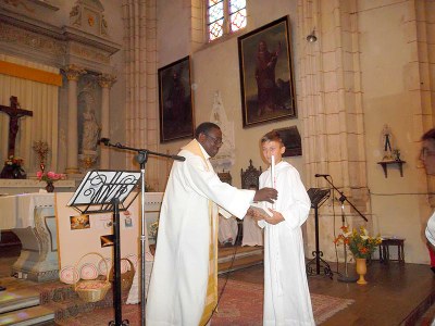 Un des moments forts de cette célébration fut le petit discours d’Antonin, fidèle au catéchisme depuis quatre ans. Il a tenu à remercier les pères Jospeh NADLONEK et Jean-Louis NGABONZIMA pour leur soutien spirituel. Les catéchistes de la paroisse pour l’apprentissage de la foi. Il a également remercié David-Marie GESTALDER pour lui avoir appris le rôle de servant d’autel.