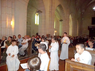 À cette occasion, l’église était pleine et chacun a pu apprécier la belle célébration du père Jean-Louis embellie par les nombreux bouquets confectionnés par les parents des communiants.