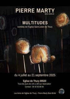 L'artiste évoque la singularité dans la multitudes en laissant découvrir plusieurs centaines de pièces de bois brûlémagnifiées et offertes au regard du visiteur